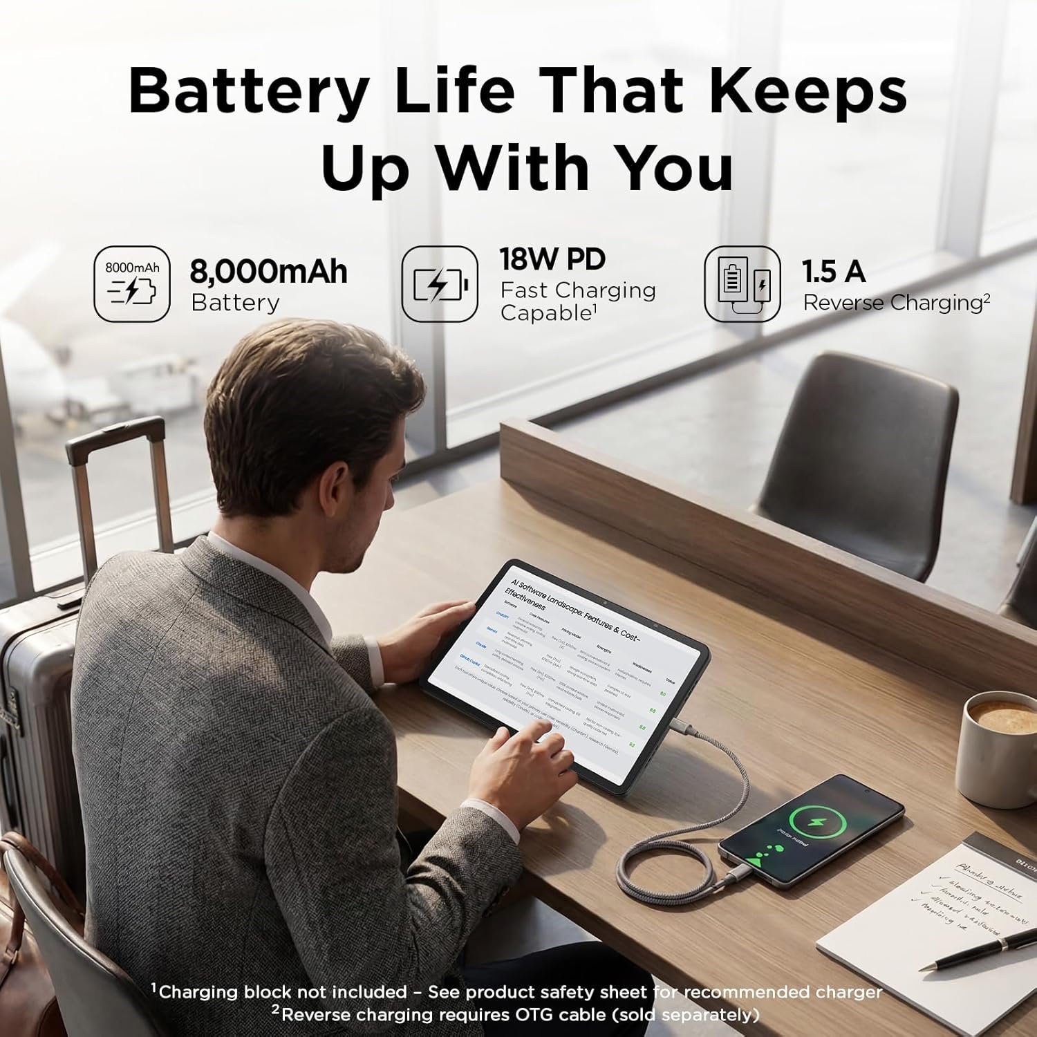 Long Battery Life with Reverse Charging: The TCL NXTPAPER 11 Gen 2 Android tablet is equipped with a powerful 8000mAh battery that easily lasts through a full day of study, work, and entertainment. With 18W PD fast charging, you’ll spend less time plugged in and more time on the go. Even better, it supports reverse charging—so you can power up your phone, earbuds, or other devices anytime, anywhere