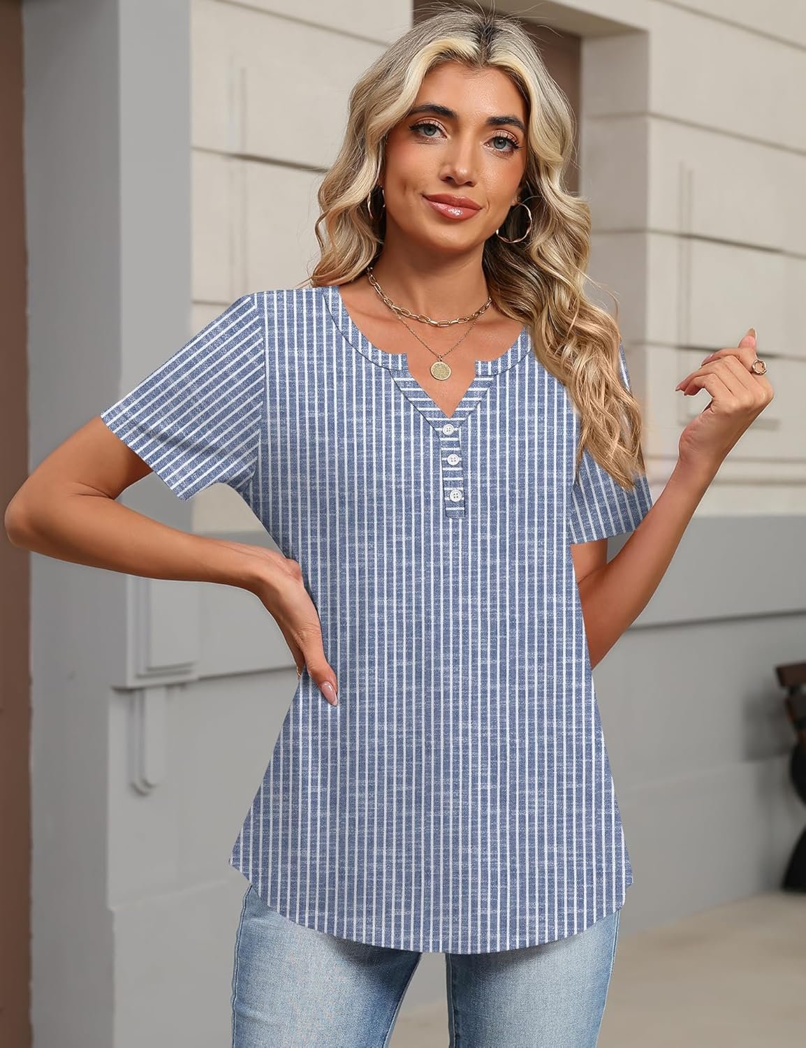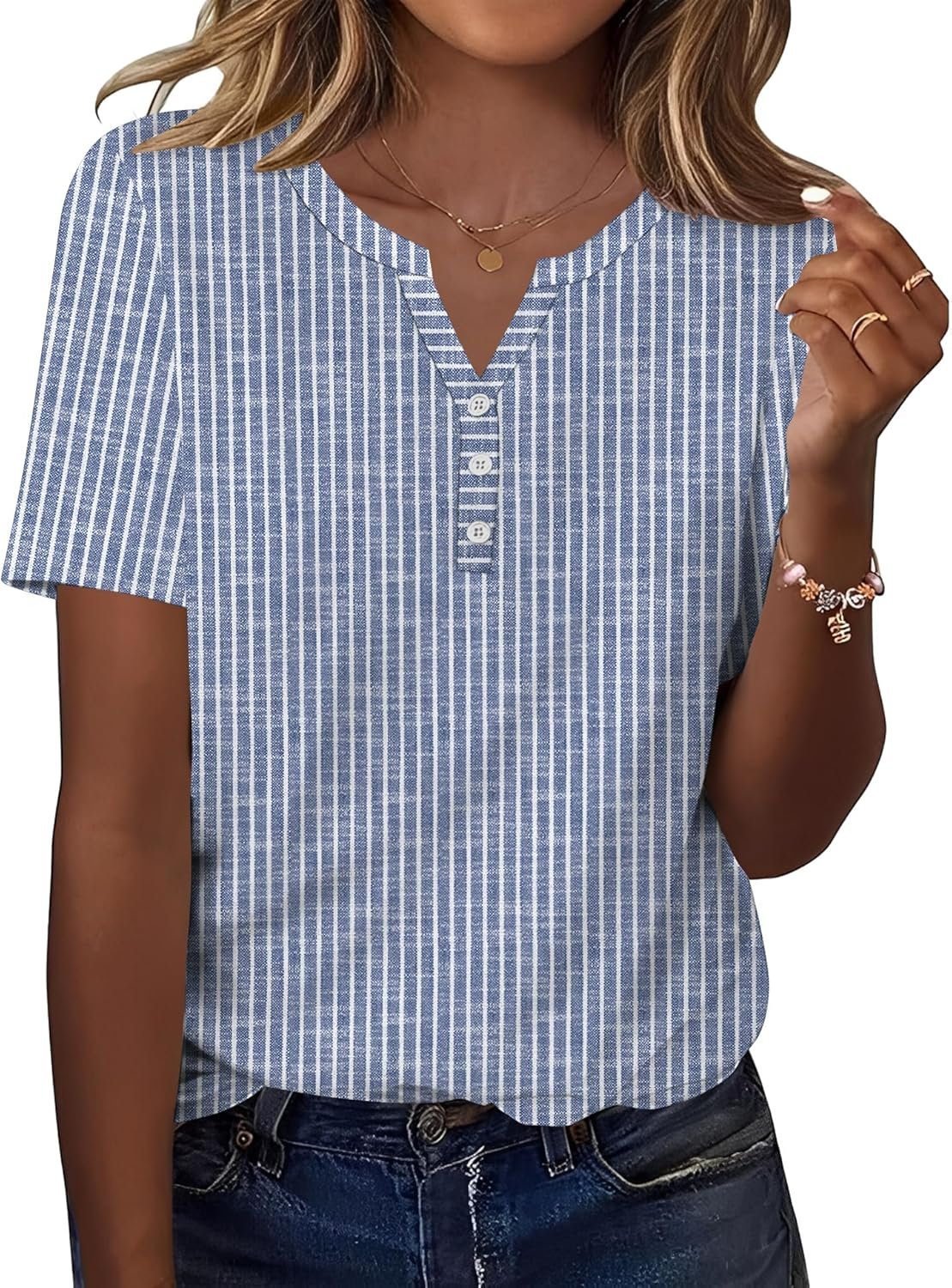 TCOT Women’s Tops Dressy Casual Summer Blouses Short Sleeve Button V Neck Spring Tee Shirts