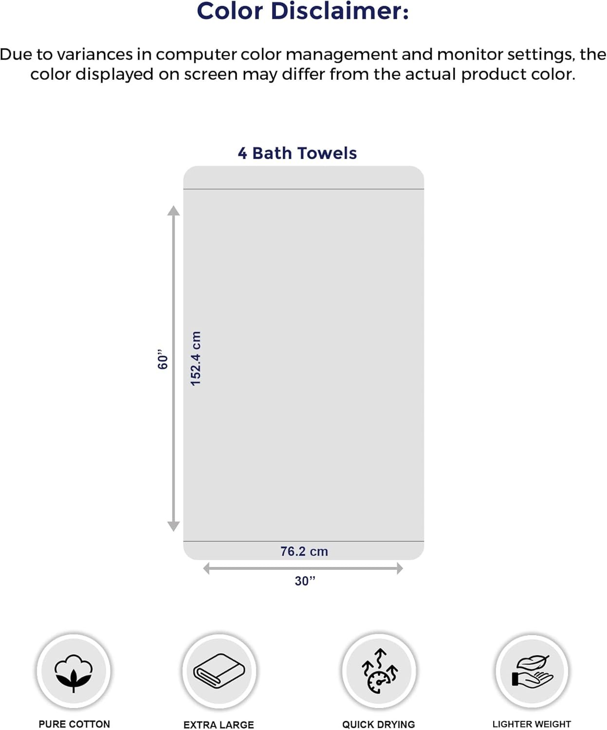 Larger: This package contains four generously sized bath towels, each measuring 30 x 60 inches, perfect to wrap yourself in