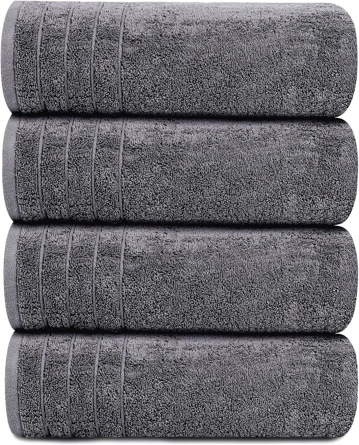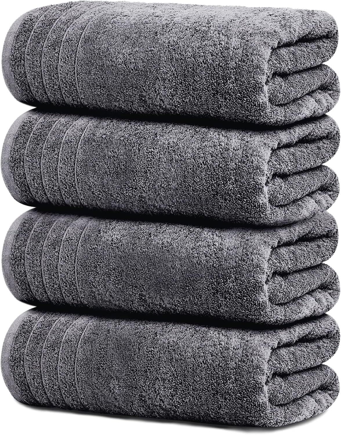 Tens Towels Pack of 4 Extra Large Bath Towels 30 x 60 Inches, 100% Cotton, Larger & Lighter Weight, Quicker to Dry, Super Soft and Absorbent, Perfect for Bathroom, Dark Grey
