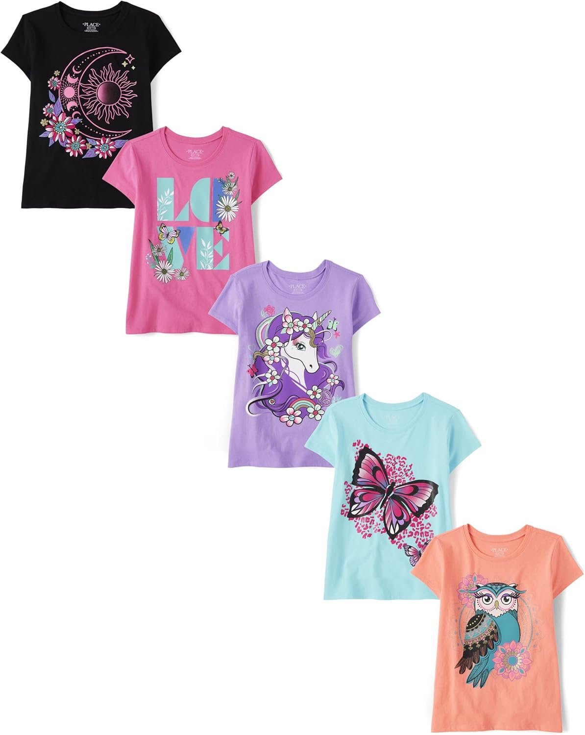The Children’s Place Girls’ Trends Icons Short Sleeve Graphic T-shirts (5-Pack)