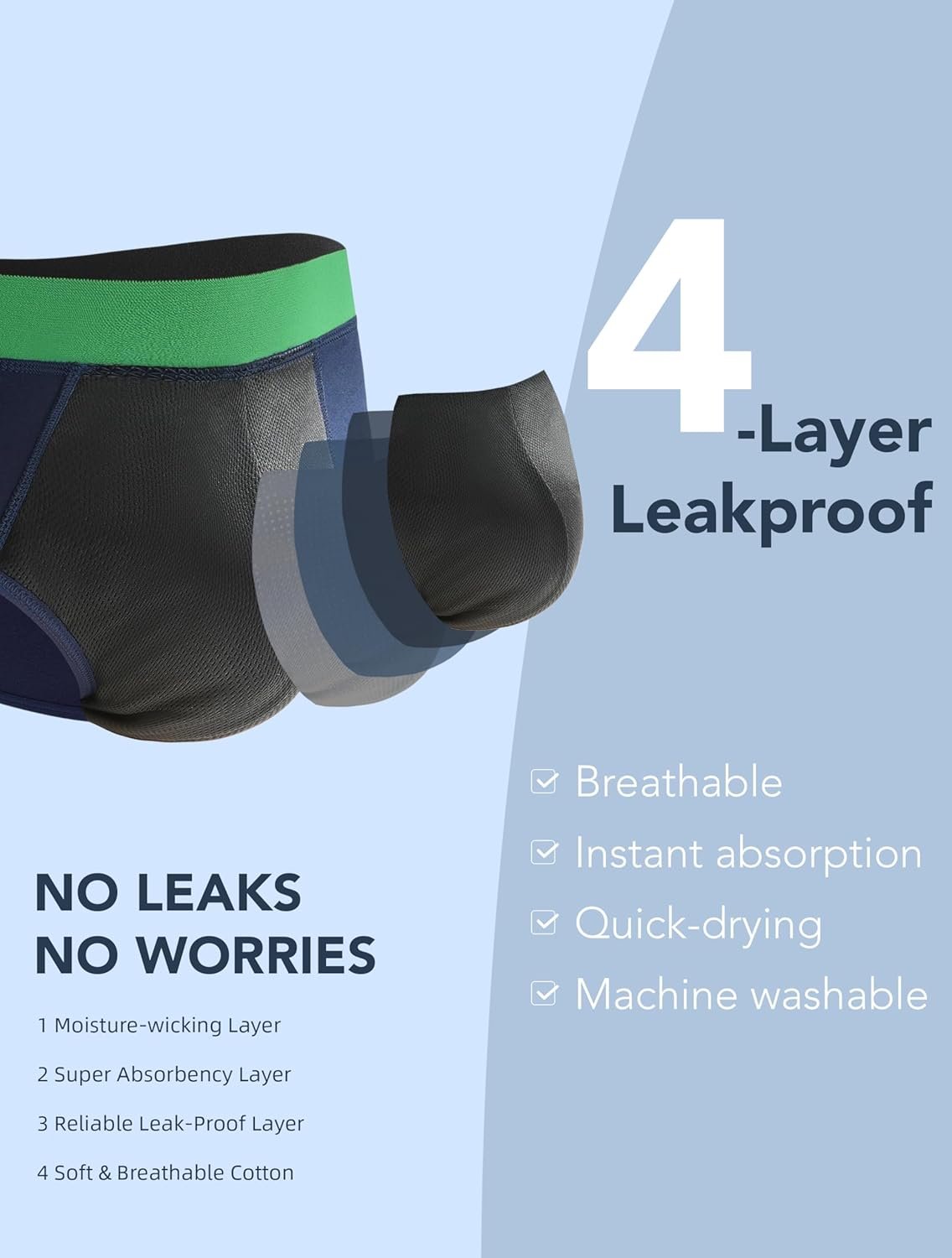 TIICHOO Mens Incontinence Underwear Washable Cotton Leak Proof Underwear for Men Briefs 5 Pack