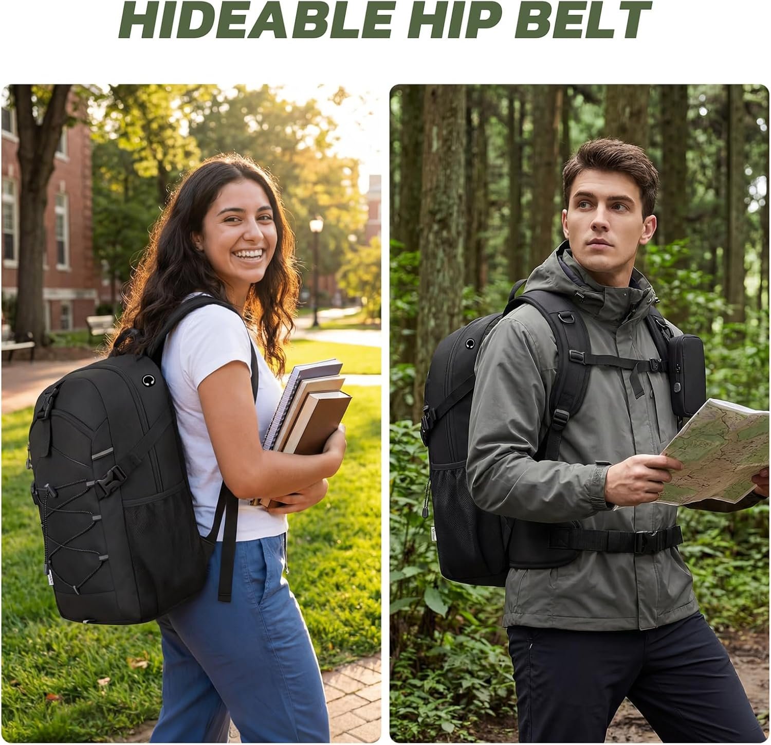 【Hideable Hip Belt】The ergonomic hip belt enhances backpack stability and reduces fatigue during long-distance hikes. We have designed a hidden pocket at the bottom of the belt, allowing you to quickly stow it away for short trips