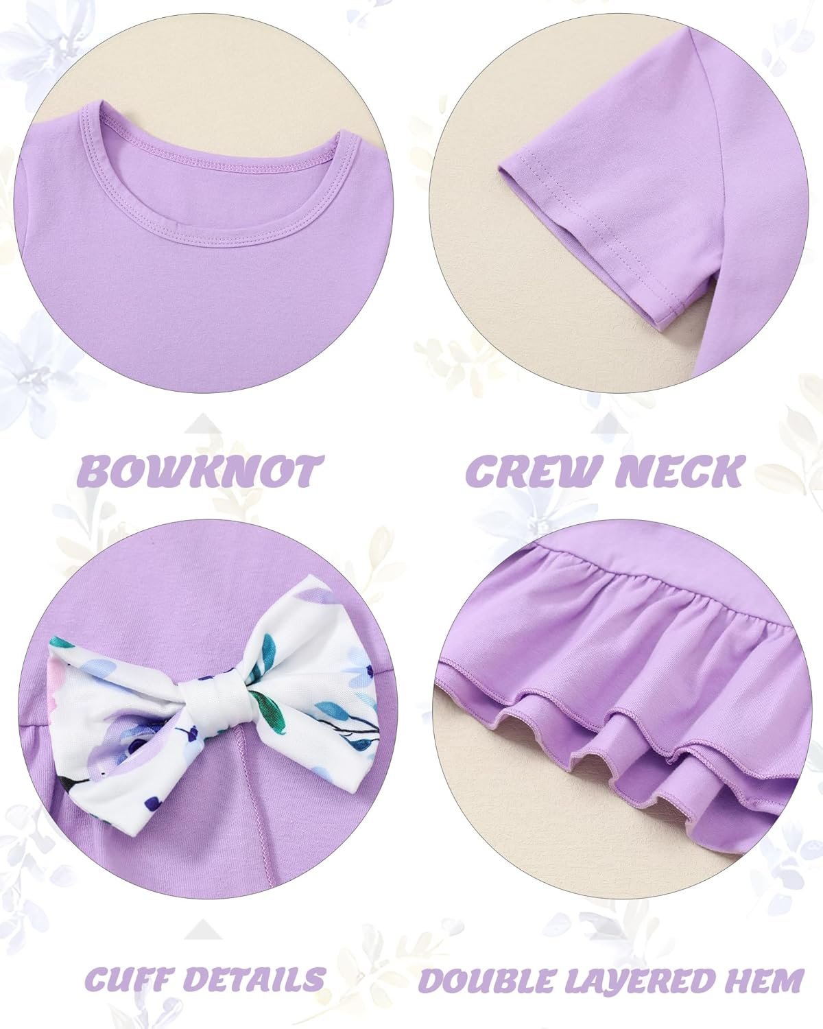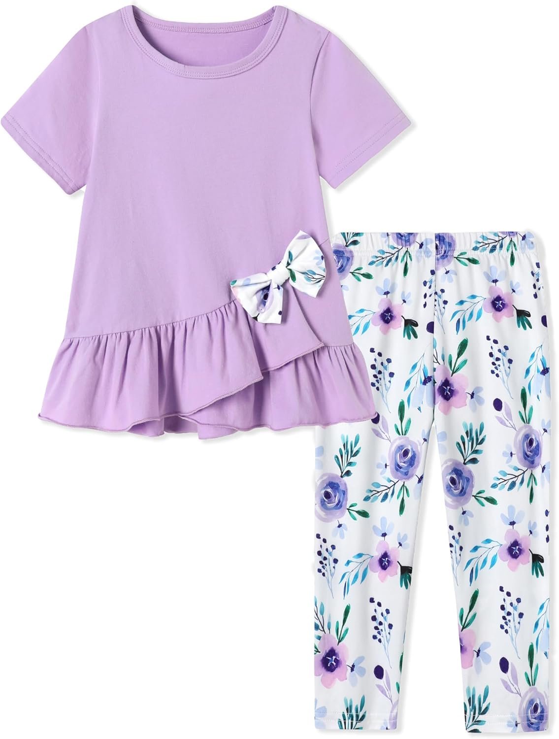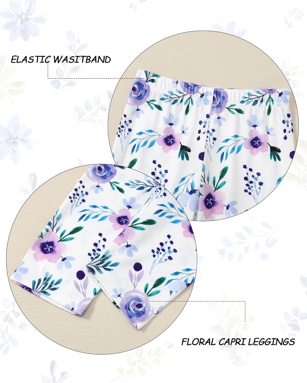 Toddler Girl Clothes 2-8Years Girls Outfit, Short Sleeve Ruffle Bowknot Top+Floral Capri Pants 2Pcs Spring Summer Set