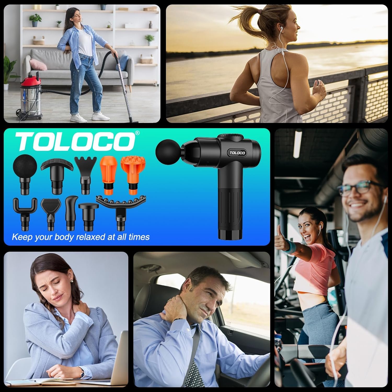 Adjustable Speed Level Design: For different muscle soreness problems, the TOLOCO deep tissue massage gun is equipped with multiple speed levels from low, medium to high, and you can find the appropriate amplitude to alleviate all muscle soreness problems