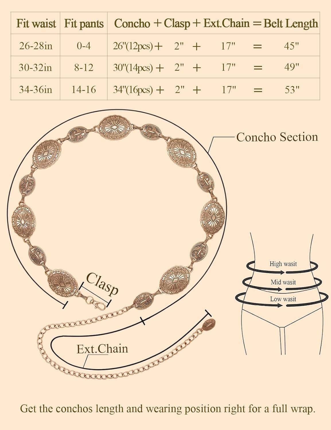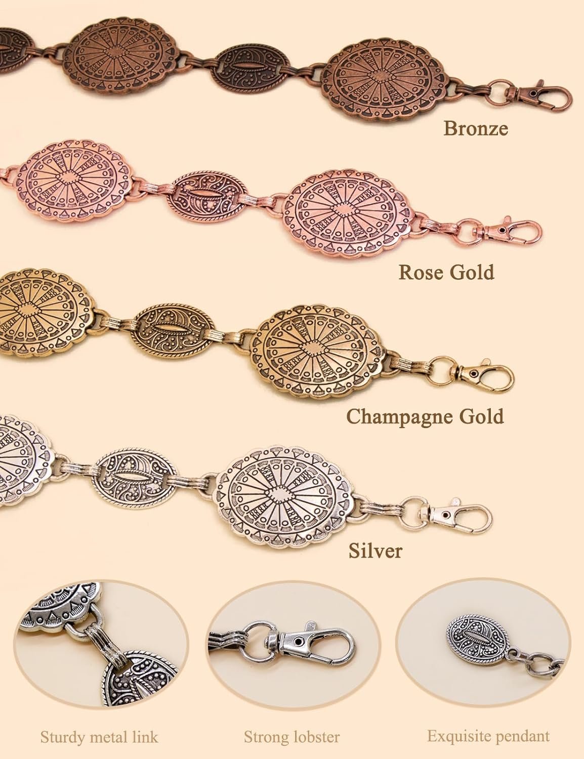 TOPACC Western Metal Concho Belt for Women Cowgirl Chain Belts for Dresses Jeans Country Concert Outfit
