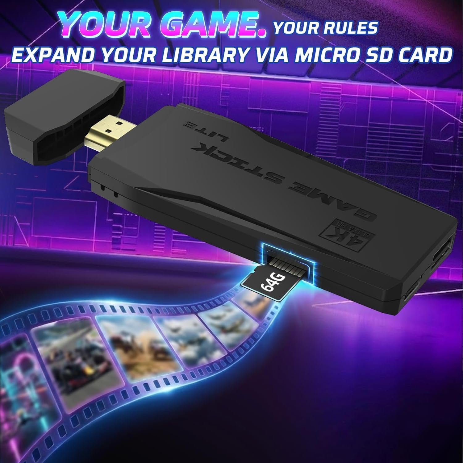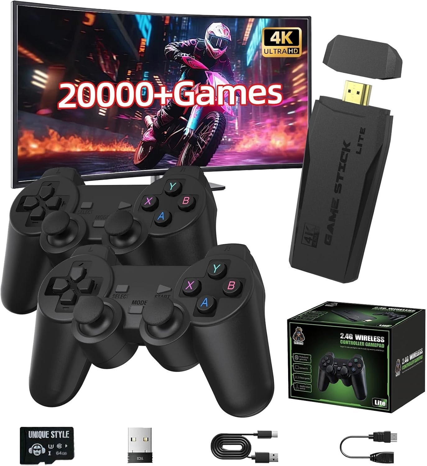 Topwest Upgraded Retro Gaming Console with 2 Pack 2.4GHz Wireless Controllers, 4K HDMI Output & 64GB, Plug & Play Game Stick for TV, Compatible with 20,000+ Classic Video Games (Black)
