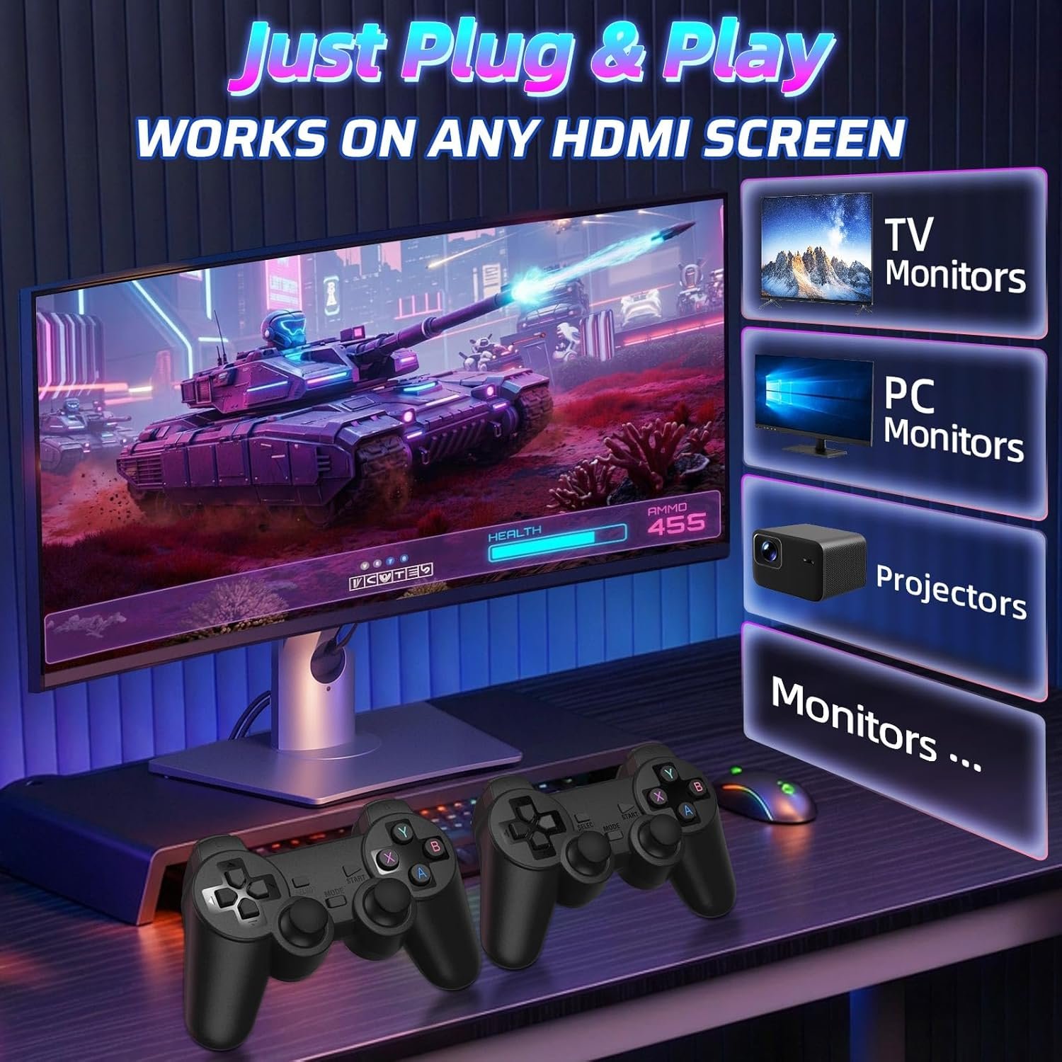 【Dual 2.4GHz Wireless Controllers】Enjoy stable, lag-free two-player action with dual 2.4GHz wireless controllers. Ergonomic design with responsive buttons and comfortable grip for hours of play. Whether co-op or head-to-head, these game consoles controllers register every input instantly. No tangled wires, no line-of-sight restrictions—just reliable wireless freedom. Perfect for multiplayer on your retro game console, turning any evening into an arcade showdown
