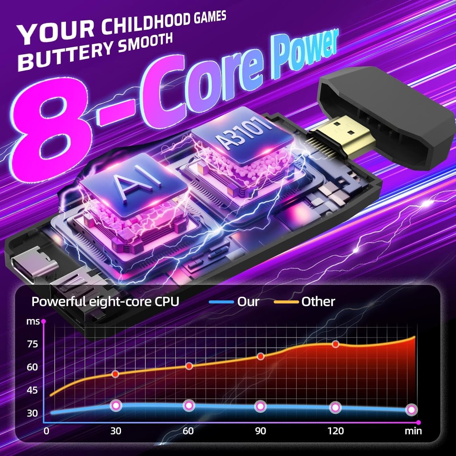 【Stunning 4K HD & Lag-Free Play】Crisp 4K HD output brings every pixel to life on your big screen. High-performance chip ensures smooth, lag-free gameplay even on demanding retro games. No screen tearing or freezing—this retro game stick delivers stable 60Hz with enhanced clarity. Every move registers instantly. 4K upscaling makes older video games sharper without losing charm. This video game console transforms classic gaming