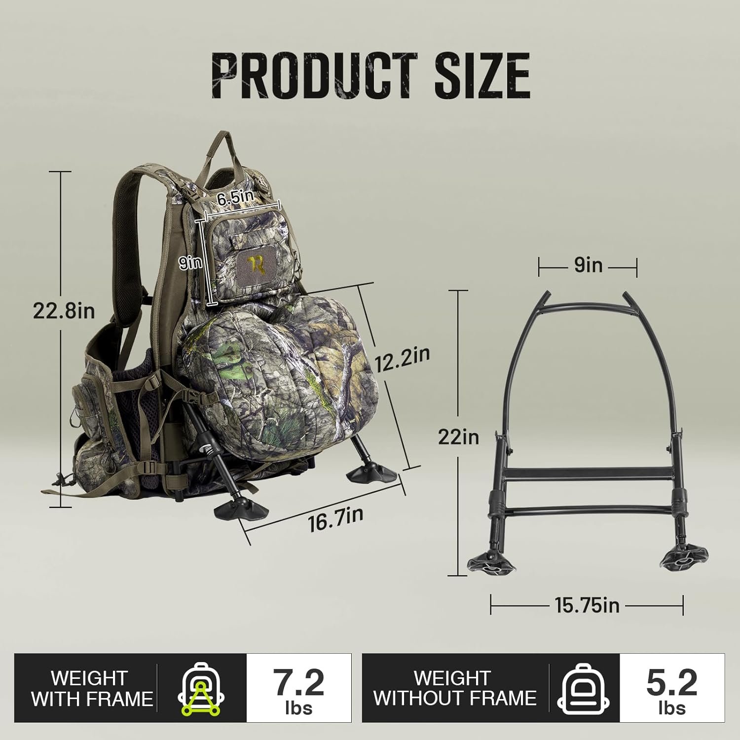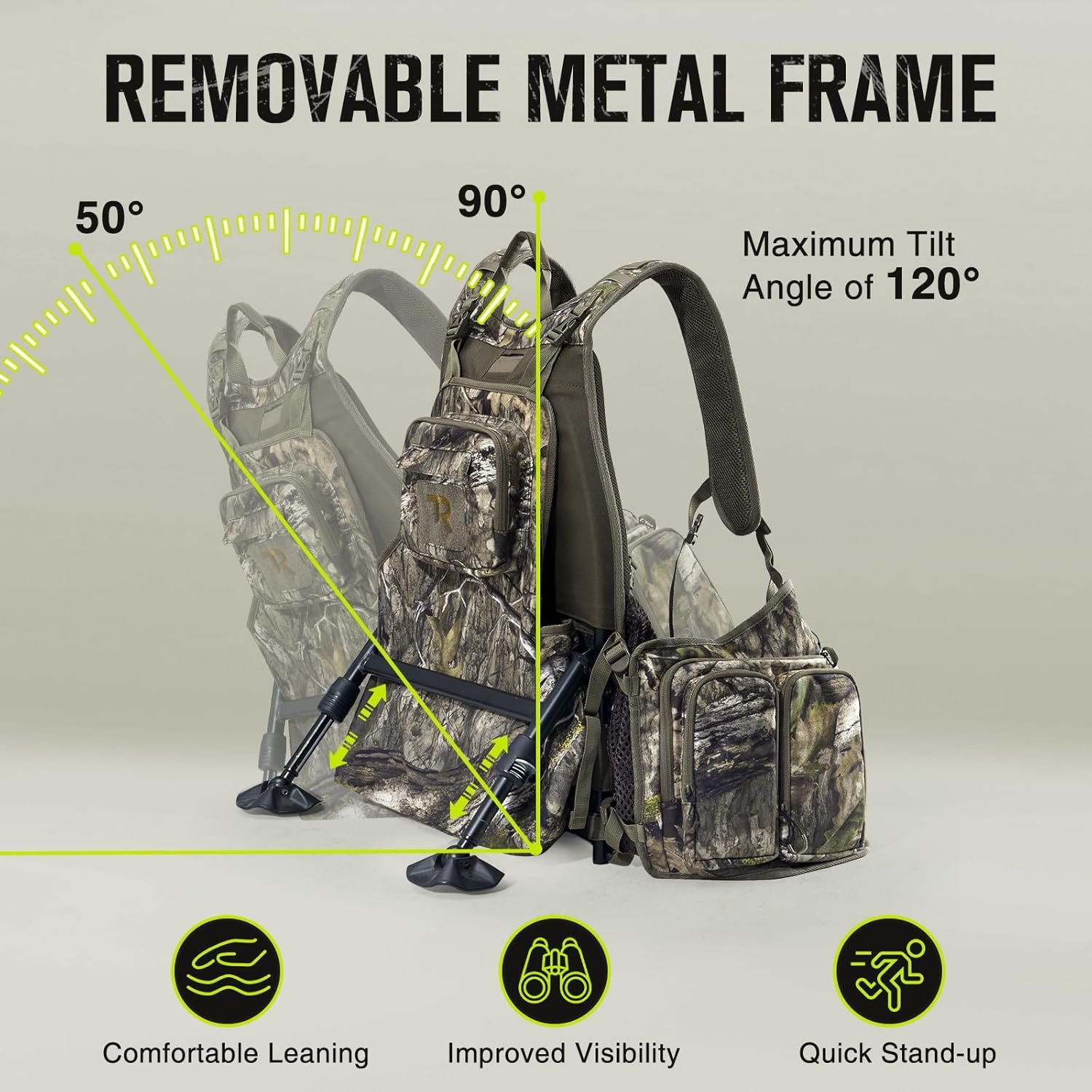 STABLE REMOVABLE FRAME & ADJUSTABLE SYSTEM: Removable and adjustable frame makes it easy for hunters to sit comfortably even without a tree. Adjustable legs with quick-lock technology and large swivel feet ensure stability and preventing sinking. 15-point adjustment system to provide a customized fit for men and women. Suitable for any body type, size or age.
