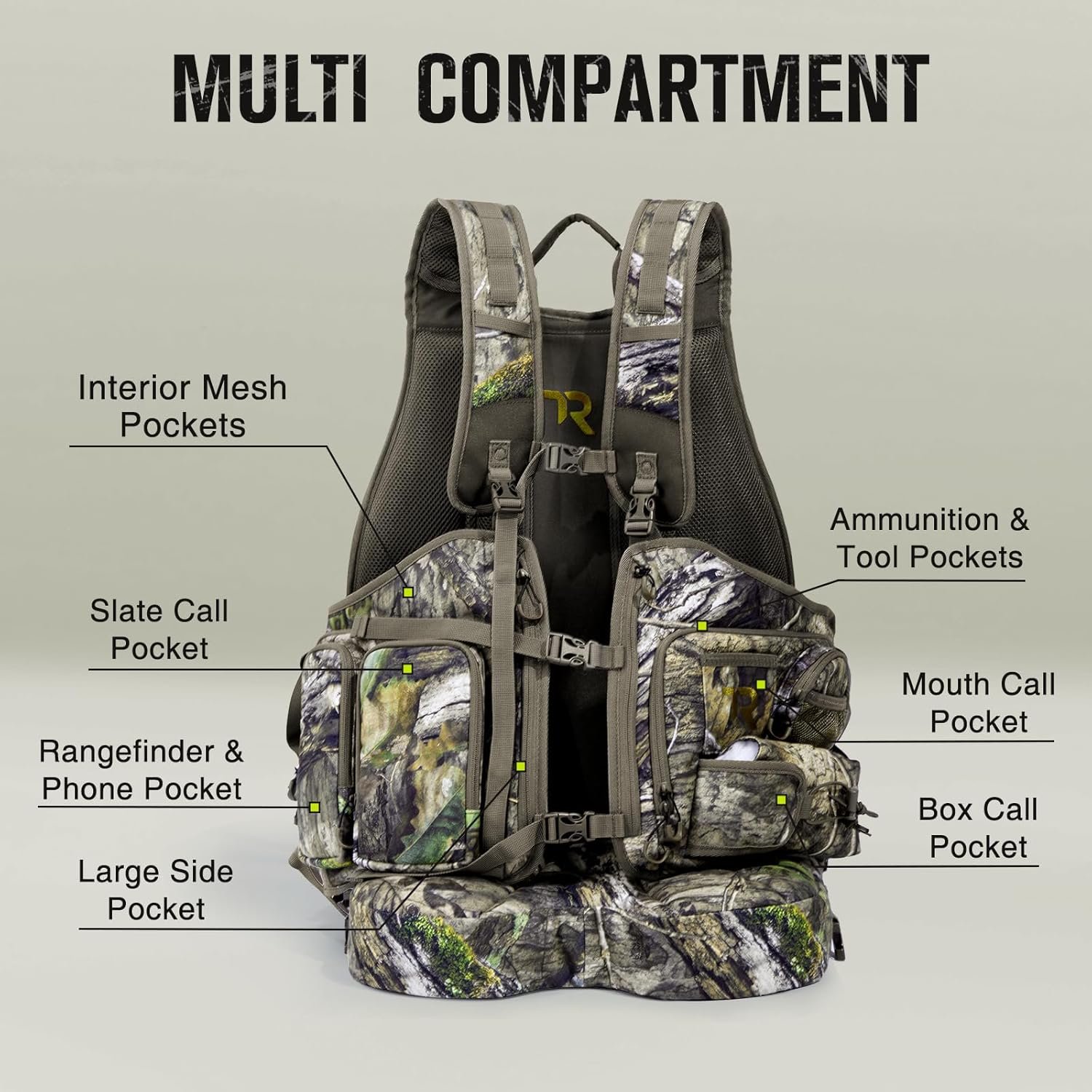 DESIGNED FOR HUNTING: TR professional and thoughtful design provides you with the ultimate hunting experience. TR turkey vest is designed with camo to help you stay completely concealed while hunting. Compatible with 2-liter hydration system for convenient hydration on the move.You can be confident in your purchase with our inclusive one-year support period.