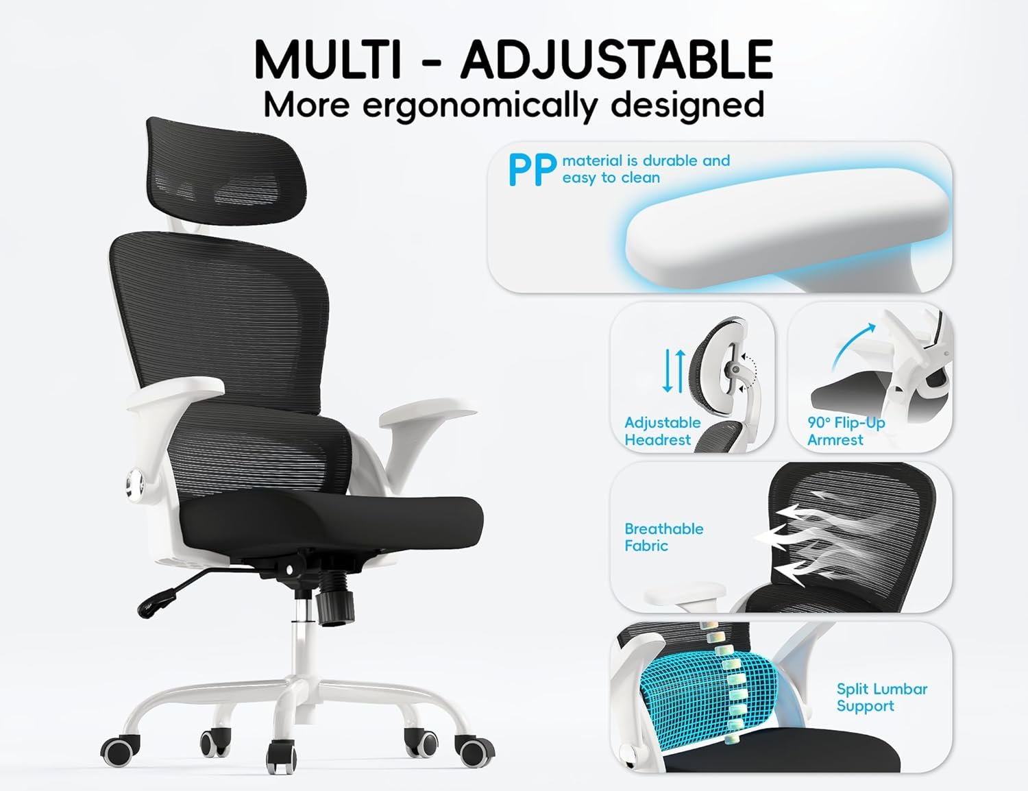 Breathable Mesh Back for Cool, Sweat-Free Sitting:Stay cool even during marathon sessions! The high-density mesh back promotes airflow, keeping you comfortable and sweat-free—no more sticky backs in summer. Plus, the flexible mesh adapts to your movements, offering dynamic support without sacrificing breathability.