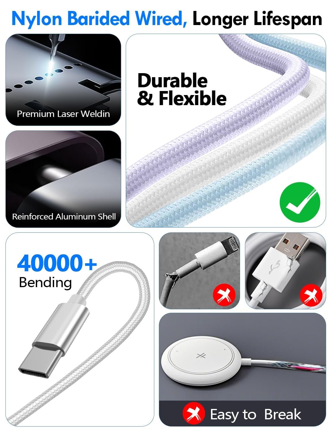 【High Quality Material】Crafted with 48-strand nylon braided and aluminum alloy shell,the charging cables for multiple devices resist breakage,lint and pulling.The multi charging cable ensures long-lasting durability and flexibility for everyday use.We provide 12-Month Quality Assurance-As a responsible brand seller,you will receive xiwxi’s 12-month Quality assurance and lifetime friendly customer service!