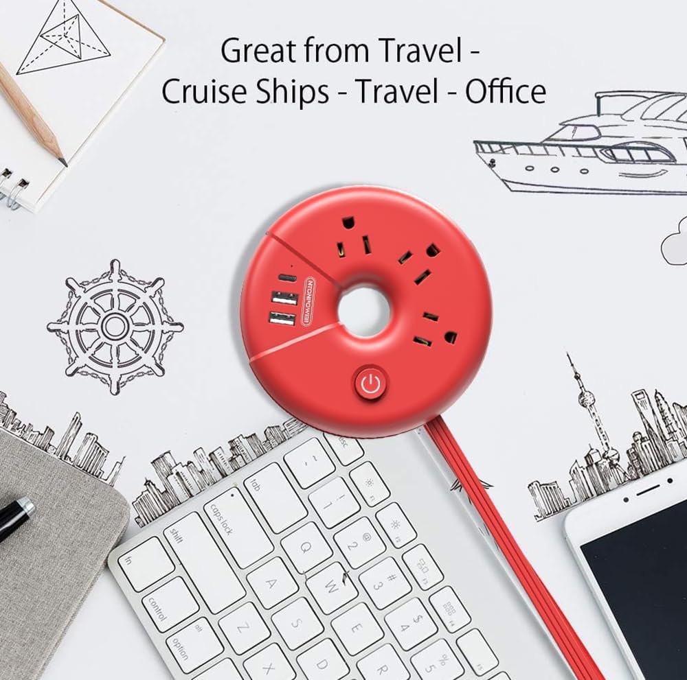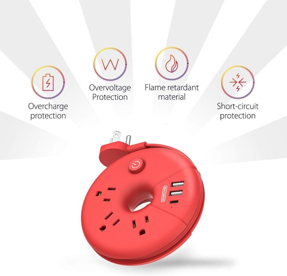 [RED POWER STRIP WITH USB]: ‘RED’ makes it quite special. This red i donut usb power strip comes with more complicated coloring technique that brings you a brand new visual experience. It is in perfect size that fits right in the palm of your hand. Great for frequent traveler cruise ships, hotels stays where there are few unreachable outlets