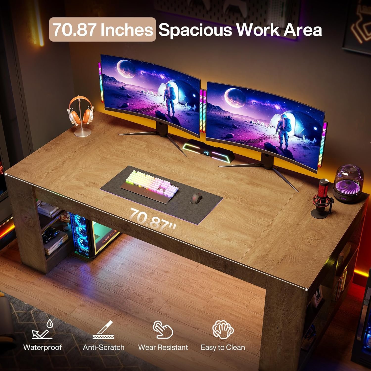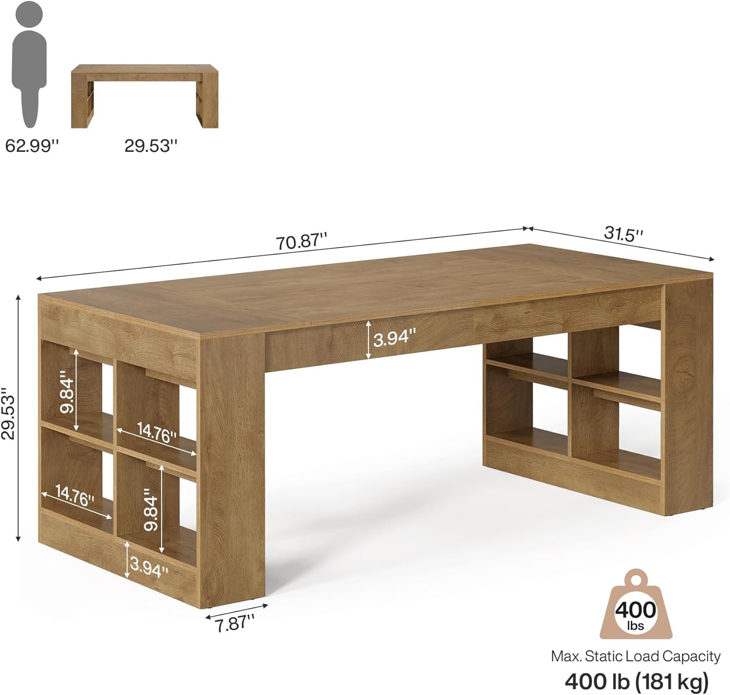 ๐๐ฉ๐๐๐ข๐จ๐ฎ๐ฌ ๐๐จ๐ซ๐ค ๐๐ฎ๐ซ๐๐๐๐: Measuring 70.87″ L x 31.5″ W x 29.53″ H, this wood desk provides ample room for multiple monitors, paperwork, and all your office essentials, keeping your workspace organized and clutter-free