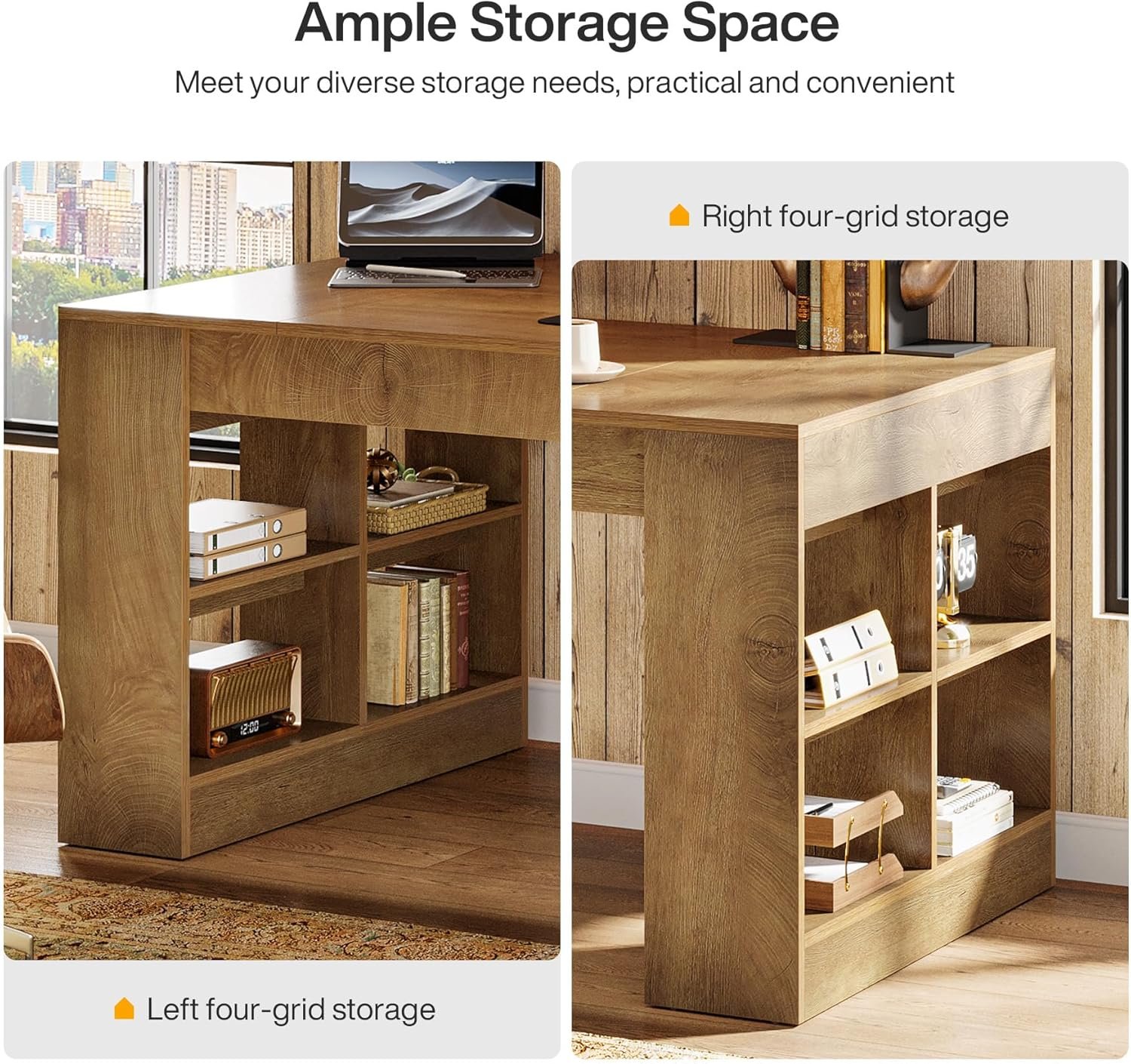 ๐๐ฉ๐๐ง ๐๐ญ๐จ๐ซ๐๐ ๐ ๐๐ก๐๐ฅ๐ฏ๐๐ฌ: Keep your office supplies, files, headphones, and books neatly organized and easily accessible with the convenient side shelves on this Tribesigns desk