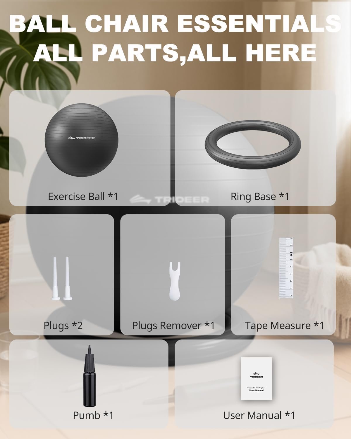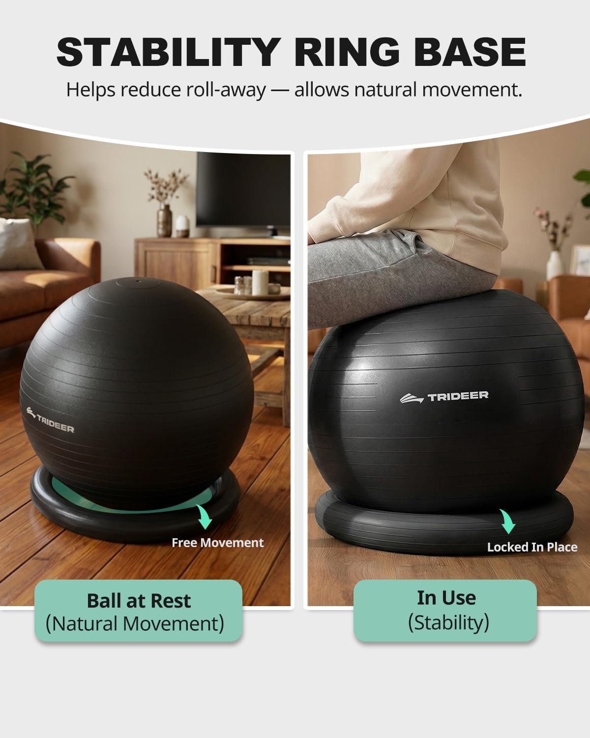Trideer Exercise Ball for Office Desk, Yoga Ball Chair to Relieve Back Pain, Stability & Fitness Ball Seat with Base, Home Gym Core Workout, Abs, Stretching & Therapy