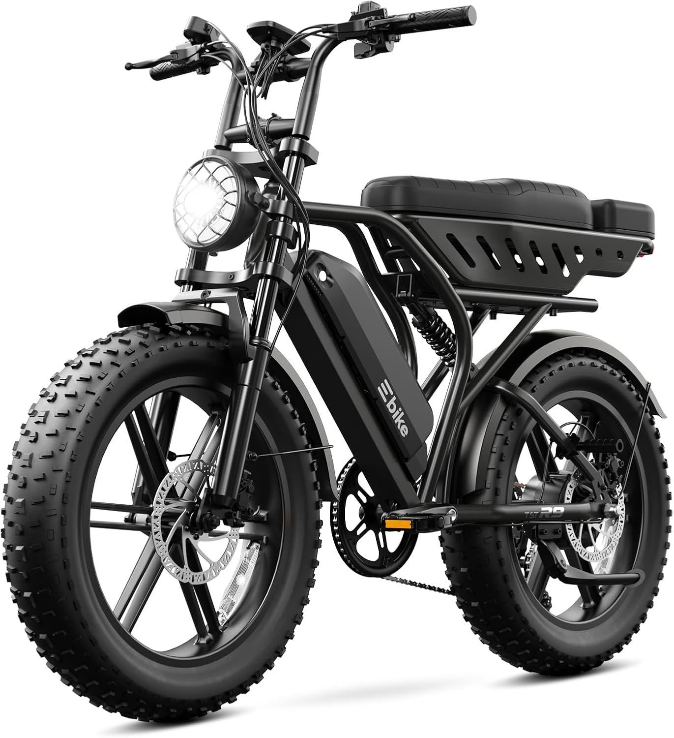 𝗣𝗼𝘄𝗲𝗿𝗳𝘂𝗹 𝗘𝗹𝗲𝗰𝘁𝗿𝗶𝗰 𝗕𝗶𝗸𝗲: This adult electric bike is equipped with a 1500W peak power motor and 90N.M torque, easily conquering a 35-degree slope, bringing a true electric off-road adventure experience. The 20×4.0-inch wide tires provide excellent grip on sand, mountains or snow, and the maximum speed set by the app can reach 28 mph, bringing a thrilling riding experience. Extended seat with integrated rear rack ensures comfort and practicality for long trips