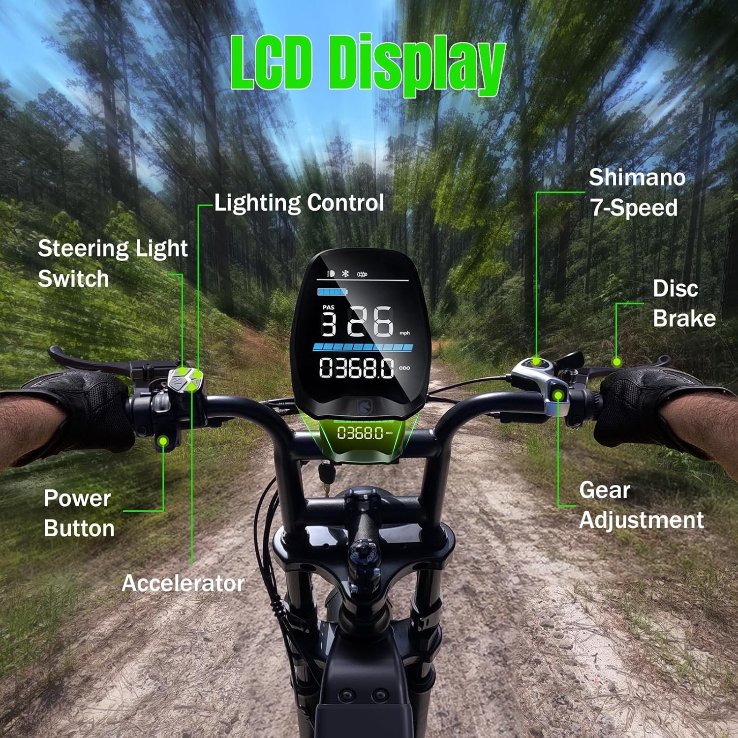 𝗠𝘂𝗹𝘁𝗶𝗽𝗹𝗲 𝗿𝗶𝗱𝗶𝗻𝗴 𝗺𝗼𝗱𝗲𝘀: This fat tire electric mountain bike can switch between pure electric, electric assist and pedal modes. In pure electric mode, you can use the motor and throttle as needed. The auxiliary power mode moderately increases the rider’s pedal power based on the speed sensor, which is very suitable for riding in different terrains, especially for reducing physical exertion when climbing. The pedal mode functions the same as a traditional bicycle
