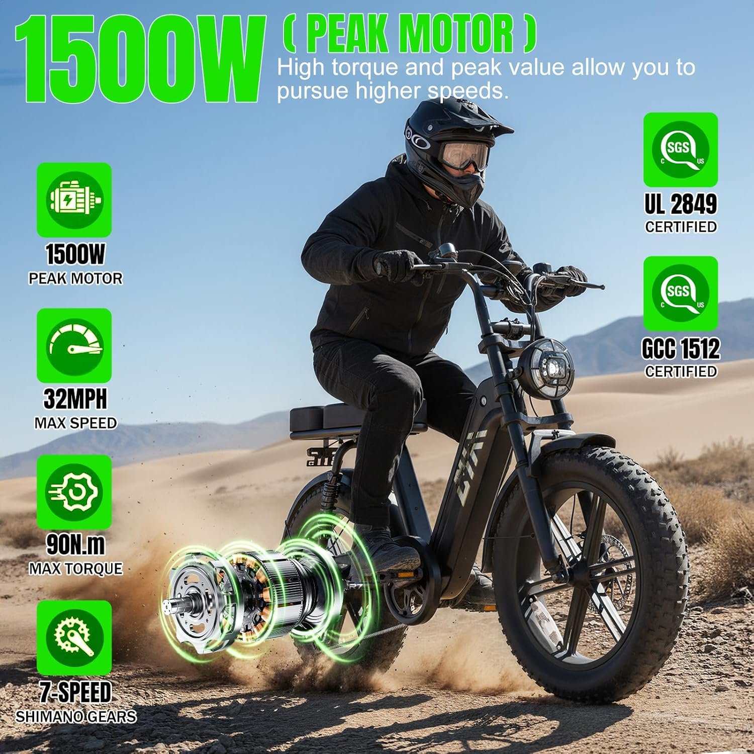 𝗣𝗼𝘄𝗲𝗿𝗳𝘂𝗹 𝗘𝗹𝗲𝗰𝘁𝗿𝗶𝗰 𝗕𝗶𝗸𝗲: This adult electric bike is equipped with a 1500W peak power motor and 90N.M torque, easily conquering a 35-degree slope, bringing a true electric off-road adventure experience. The 20×4.0-inch wide tires provide excellent grip on sand, mountains or snow, and the maximum speed set by the app can reach 28 mph, bringing a thrilling riding experience. Extended seat with integrated rear rack ensures comfort and practicality for long trips