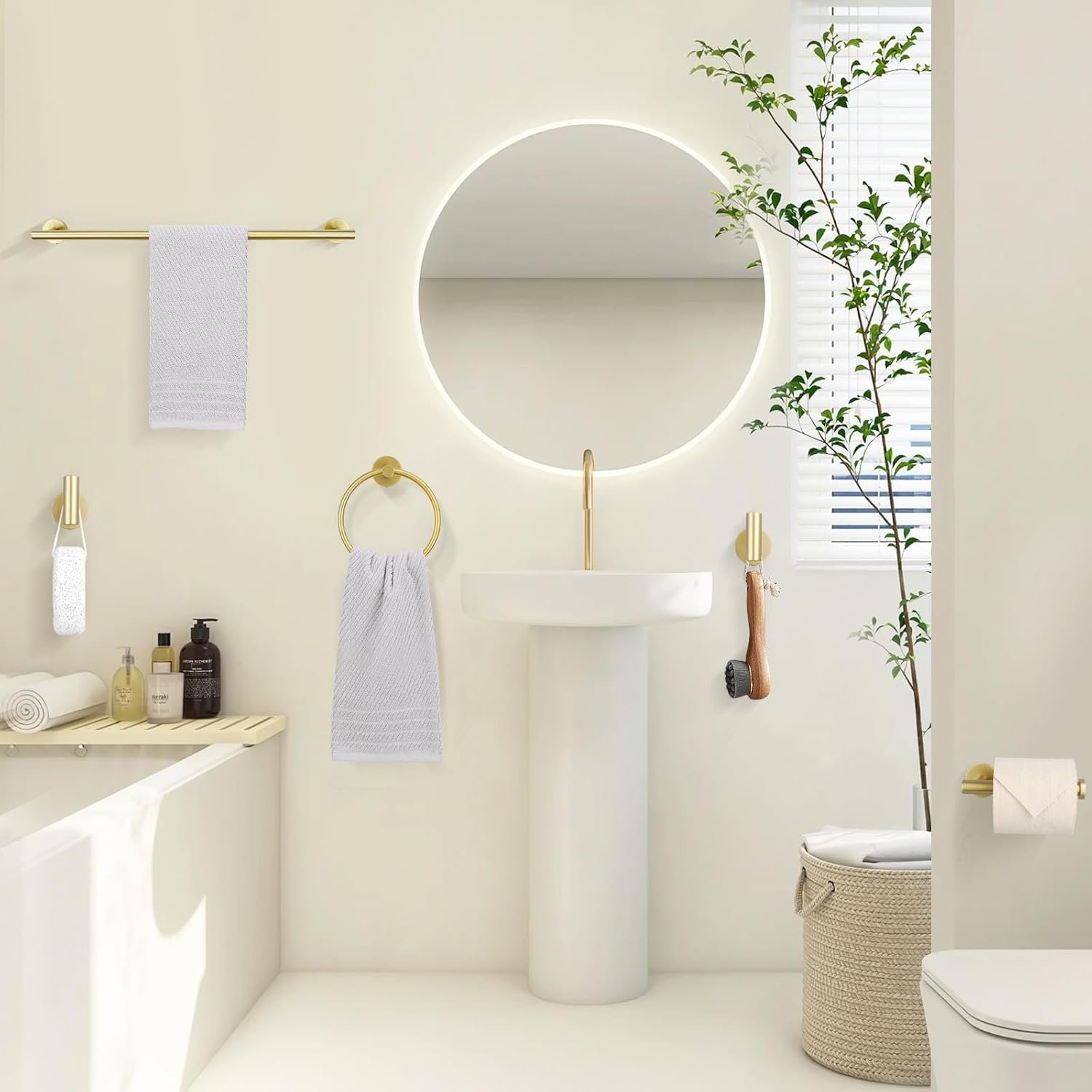 TURS Brushed Gold 5 Piece Bathroom Hardware Set, SUS304 Stainless Steel 24 Inch Bath Towel Bar Set, Round Bathroom Accessories Kit Wall Mounted