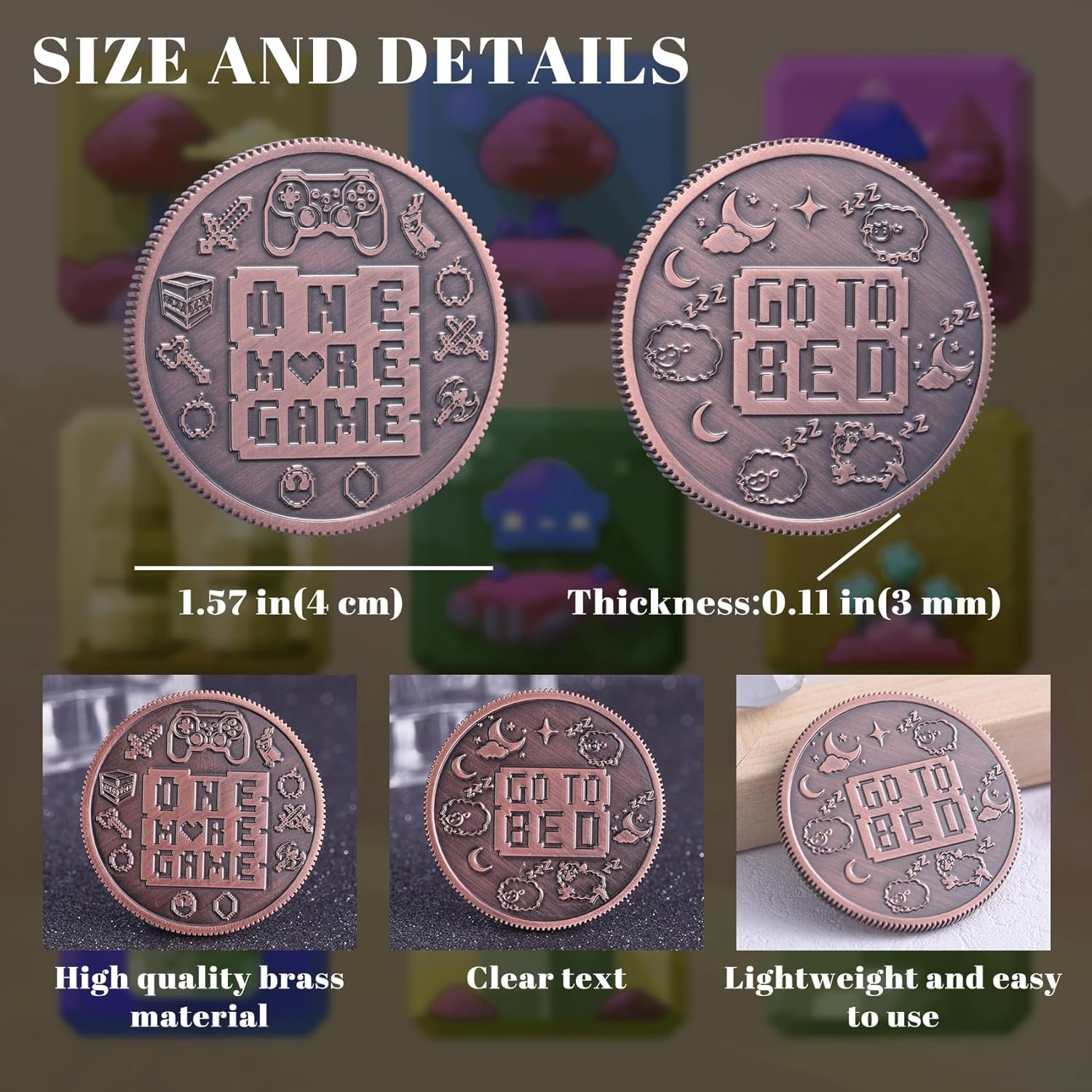 ✨Fun Double Sided Coins: When faced with the difficult decision of “one more game” or “go to bed,” tossing this funny coin can add a touch of relaxation and enjoyment to your choice. Having a funny coin can help you relieve stress and make you feel happier! Perfect for gamer accessories and funny gamer gifts.