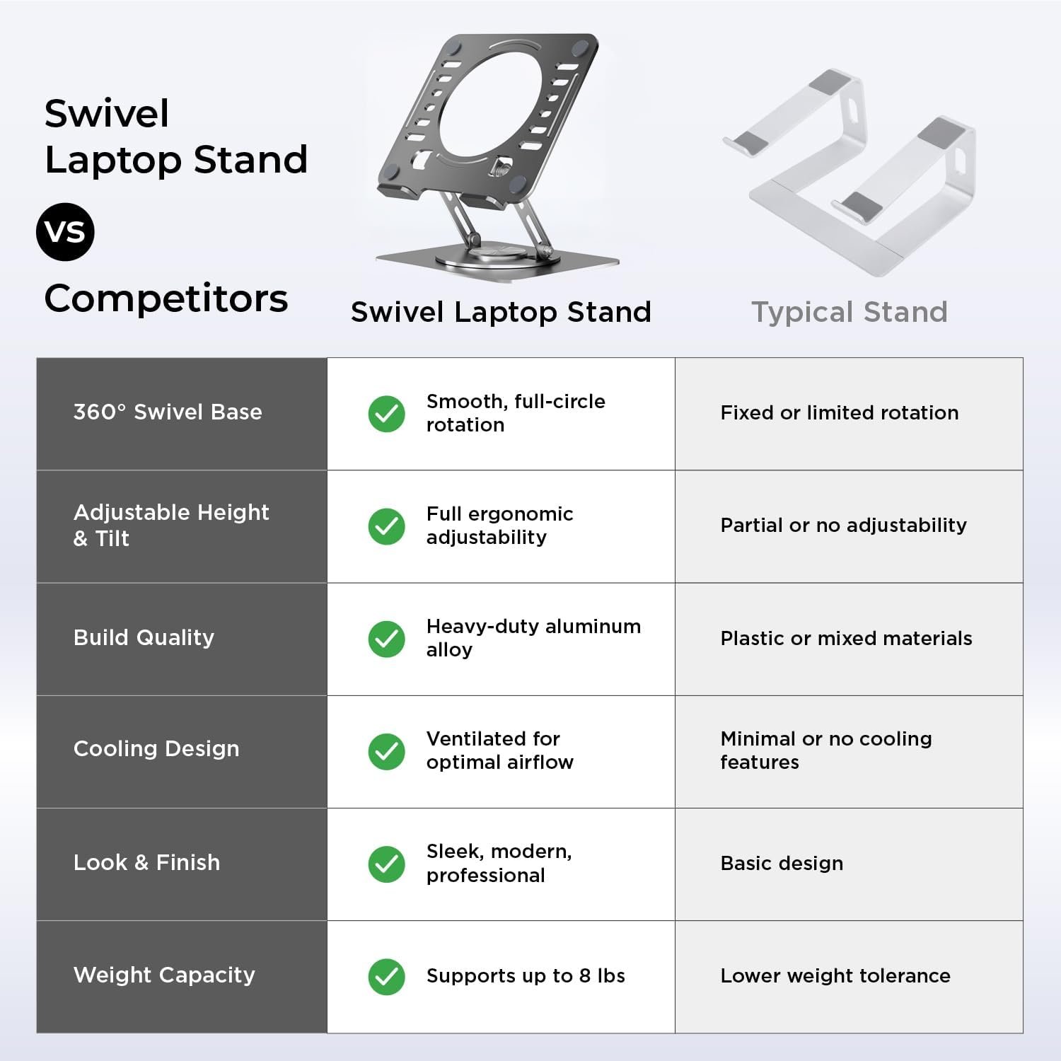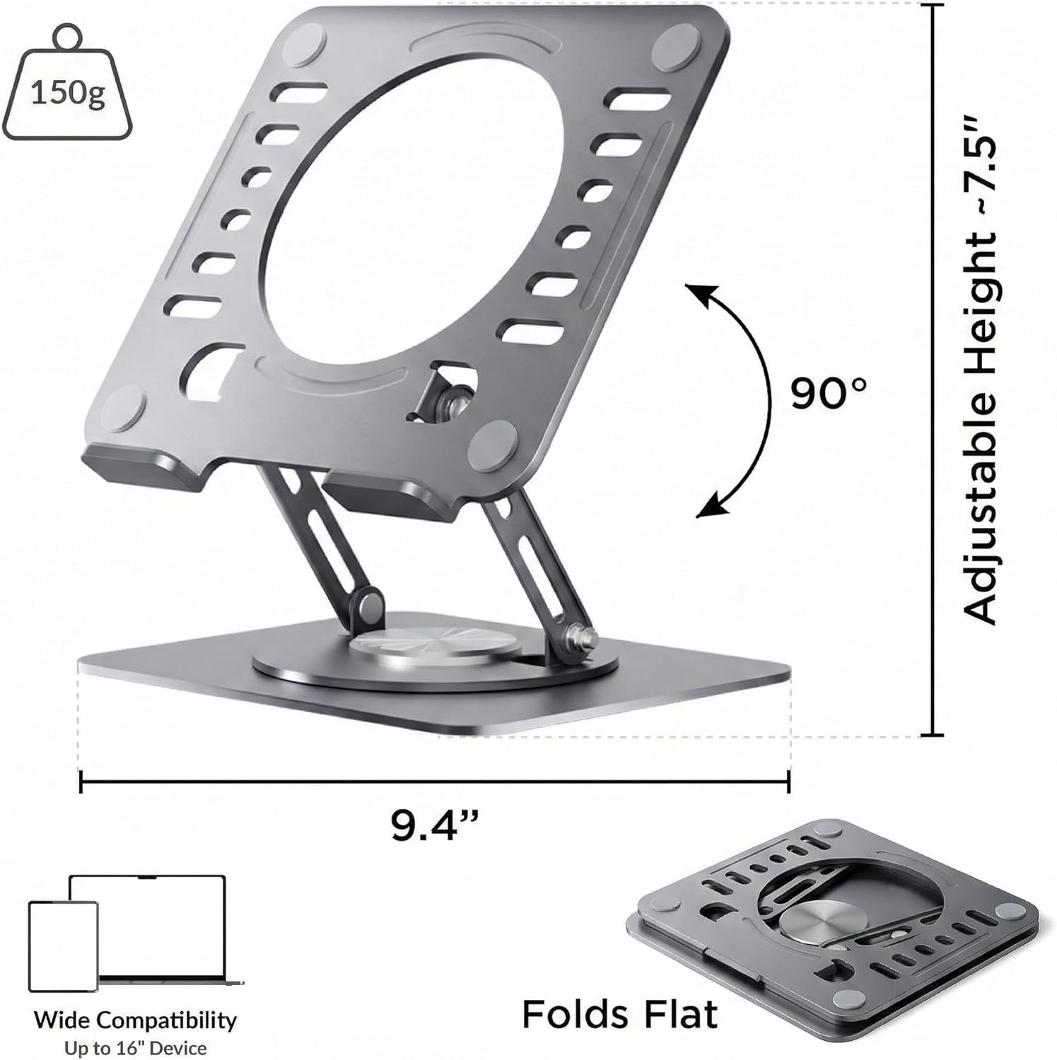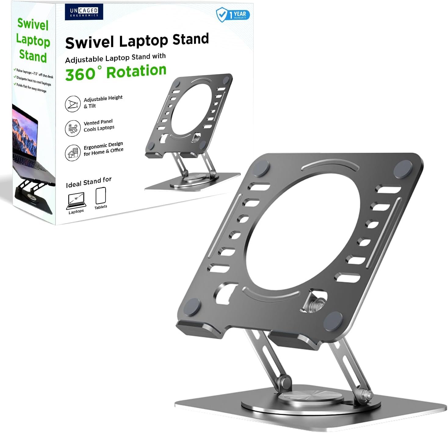 Uncaged Ergonomics Swivel Laptop Stand for Desk, Adjustable Computer iPad Stand for Desk w/ 360 Rotation, Portable Laptop Holder for Home Office Ergonomic Supplies (Space Gray)
