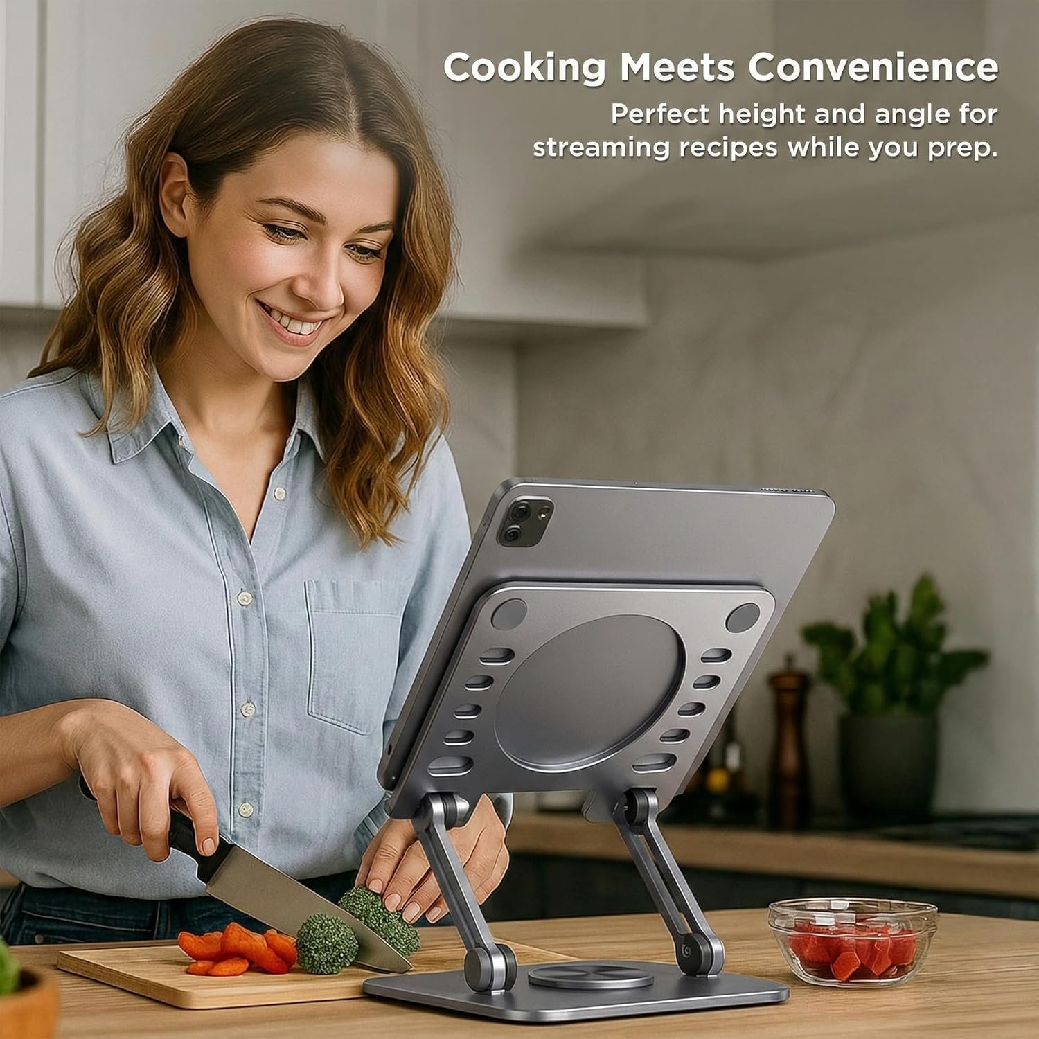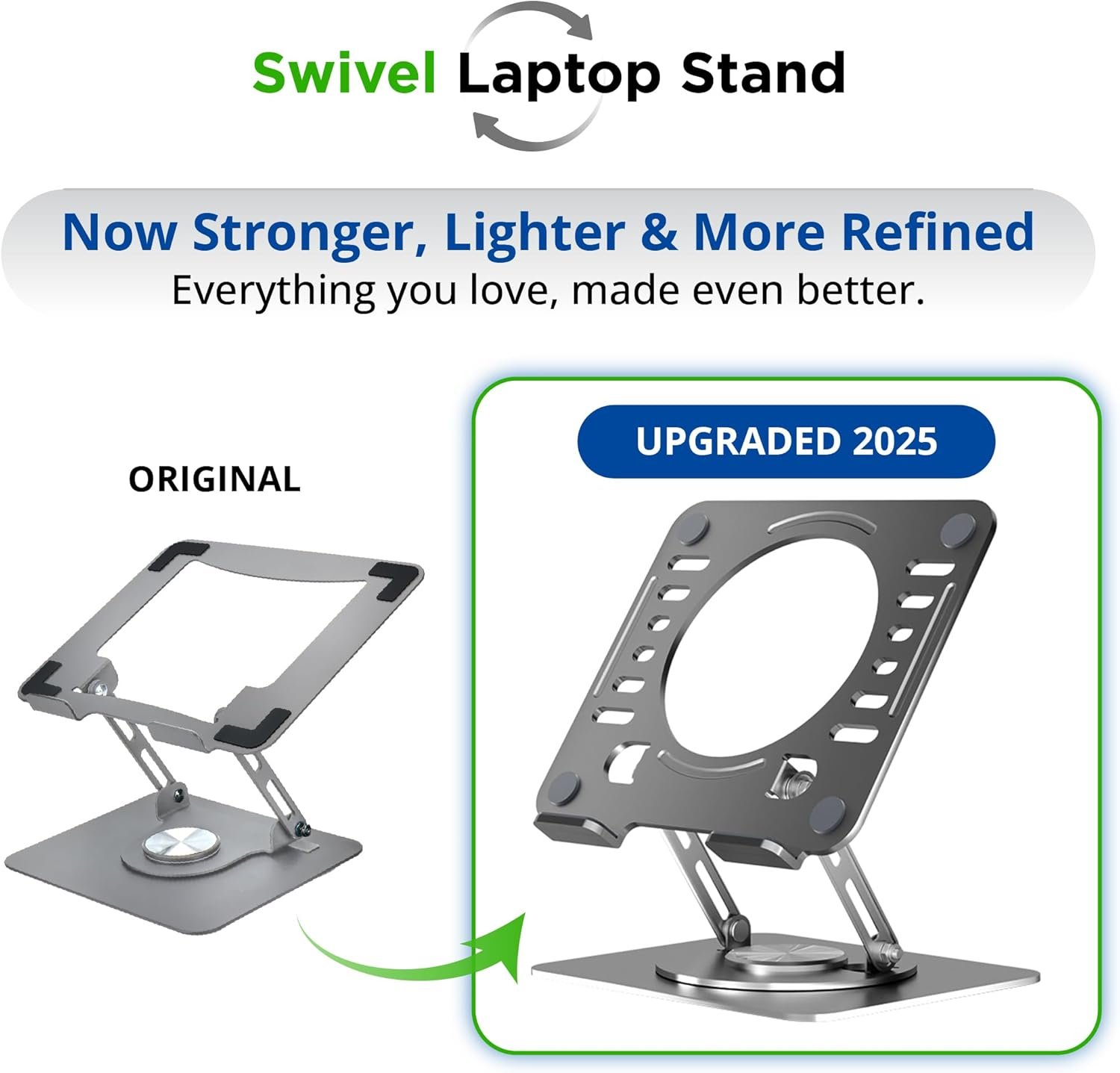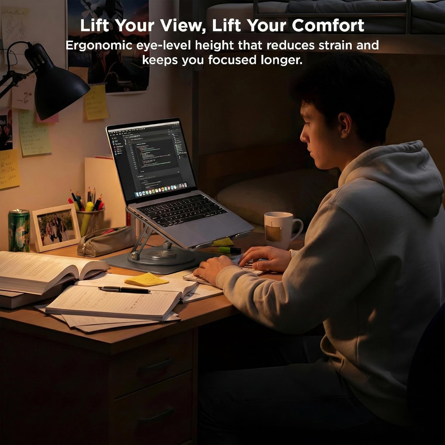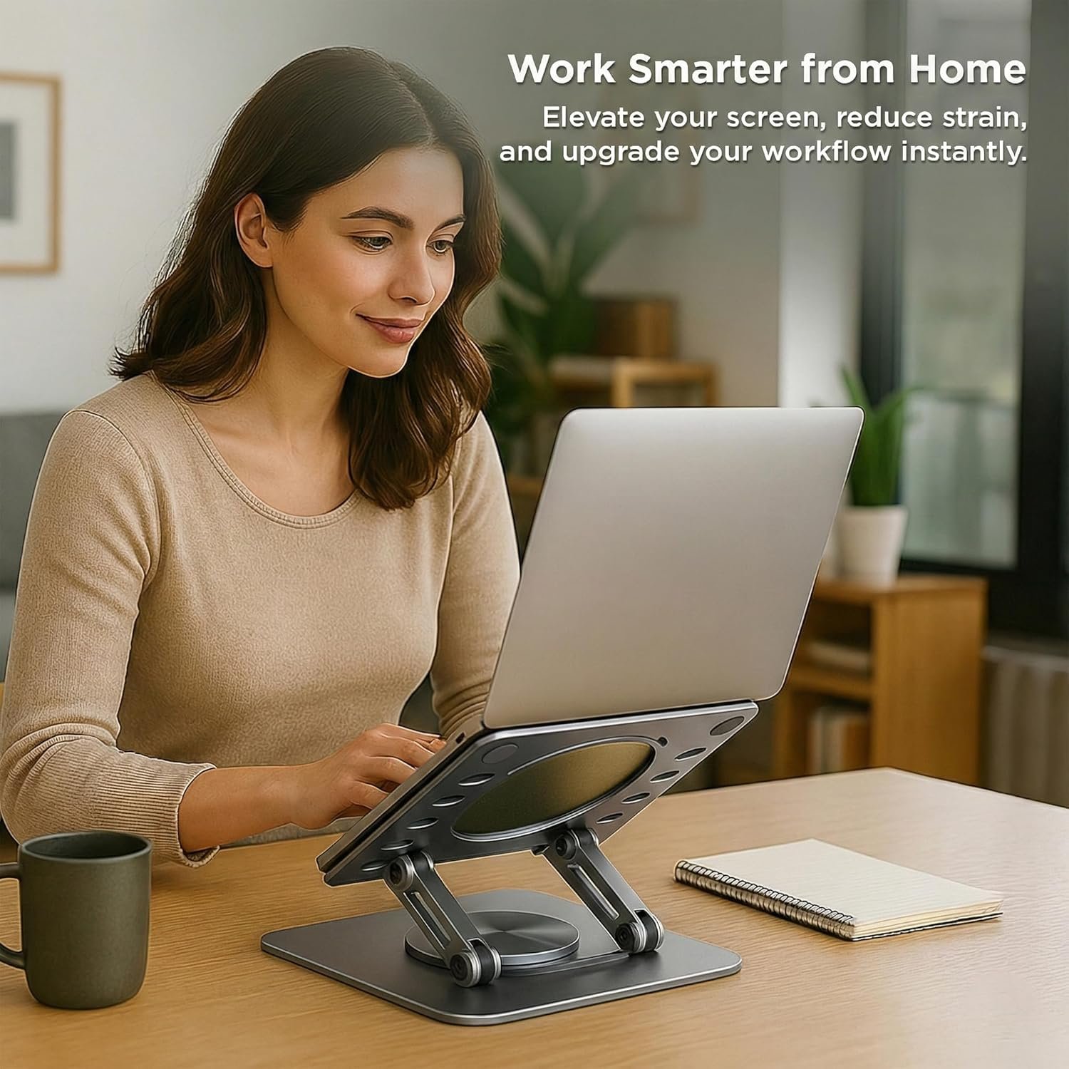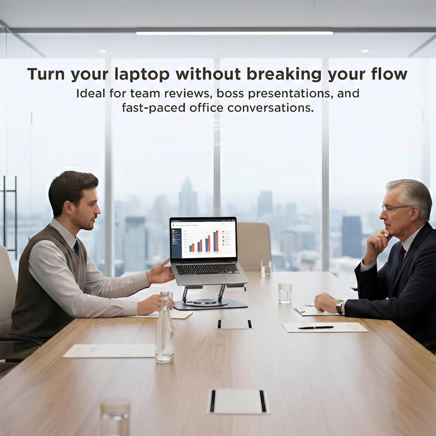 ROTATE: Enhance collaboration and flexibility with a computer laptop stand with 360° rotation, perfect for designers, presenters, and remote workers sharing screens effortlessly.