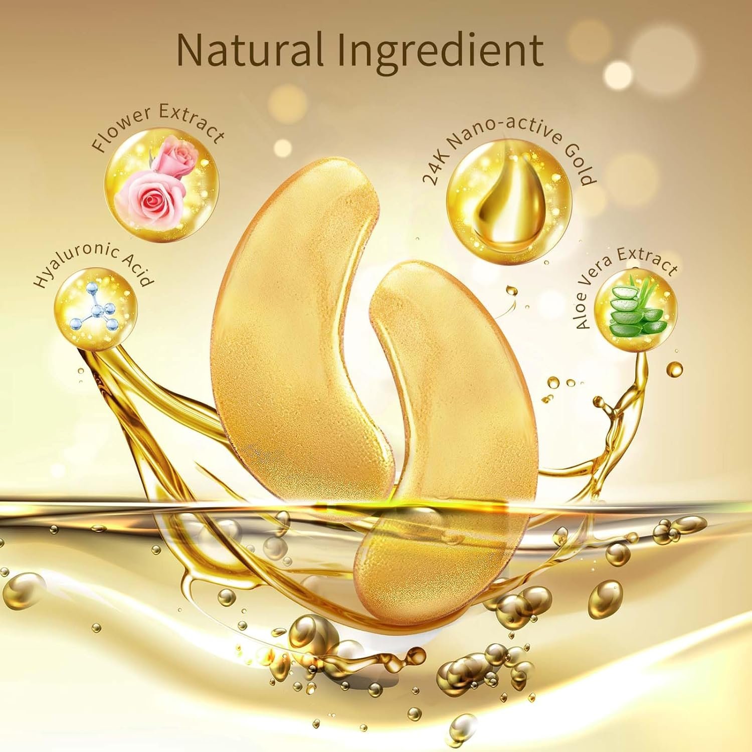 HIGHLY EFFICIENTY SKIN CARE: USTELIR 40 pairs eye patches included 24k Gold eye mask (10 pairs),Rose eye patches(10 pairs), Aloe Vera eye patch(10 pairs),Hyaluronic Acid eye masks(10 pairs).24k Gold eye mask helps to smooth the skin, reduce dark circles under the eyes.Rose eye patches help prevent aging and brightening.Aloe vera eye patch helps to gently moisturize the skin.Hyaluronic acid eye masks help to lighten wrinkles.Say goodbye to under eye fatigue, giving you a youthful, refreshed look.