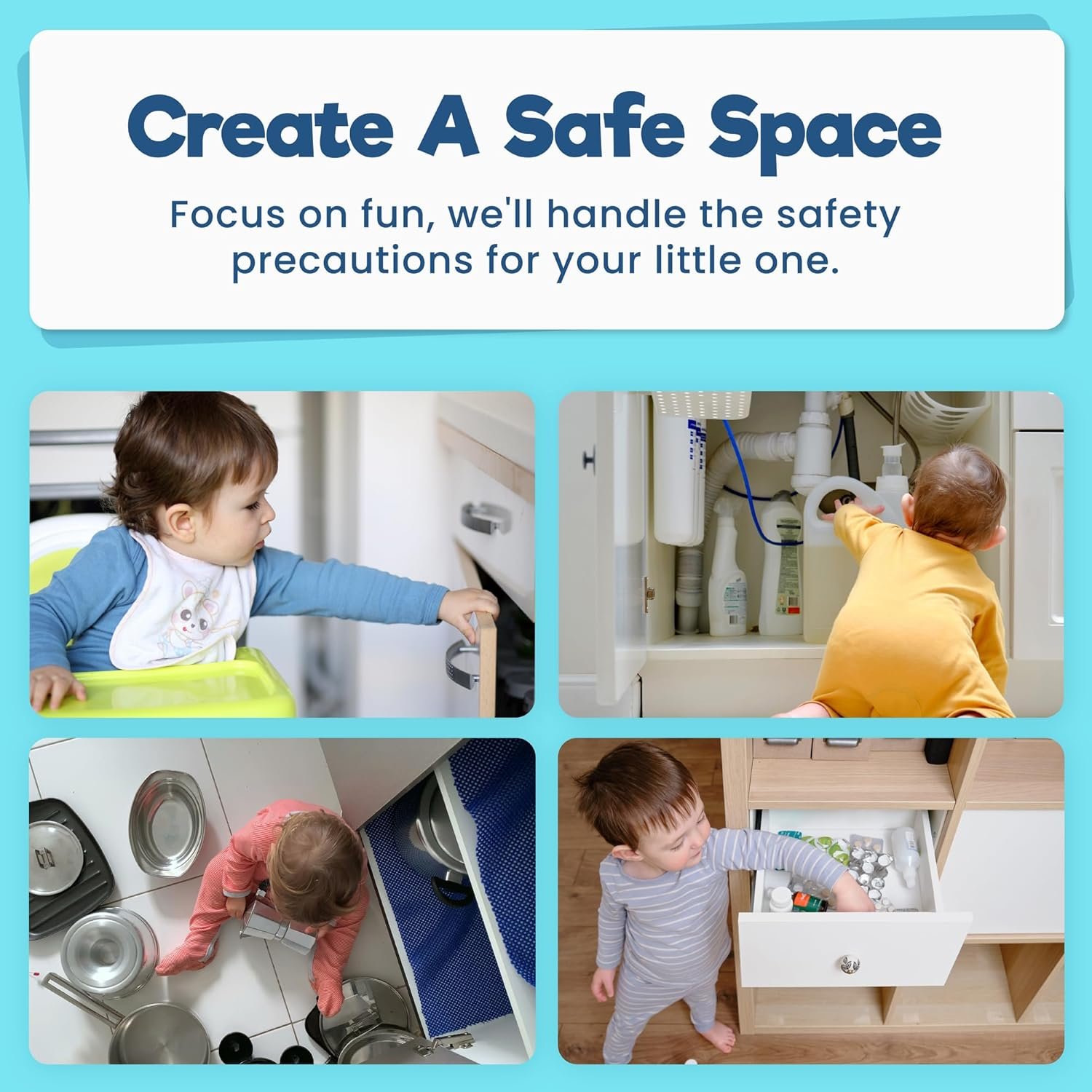 Upgraded Invisible Baby Proofing Cabinet Latch Locks (10 Pack) – No Drilling or Tools Required for Installation, Works with Most Cabinets and Drawers, Works with Countertop Overhangs, Highly Secure