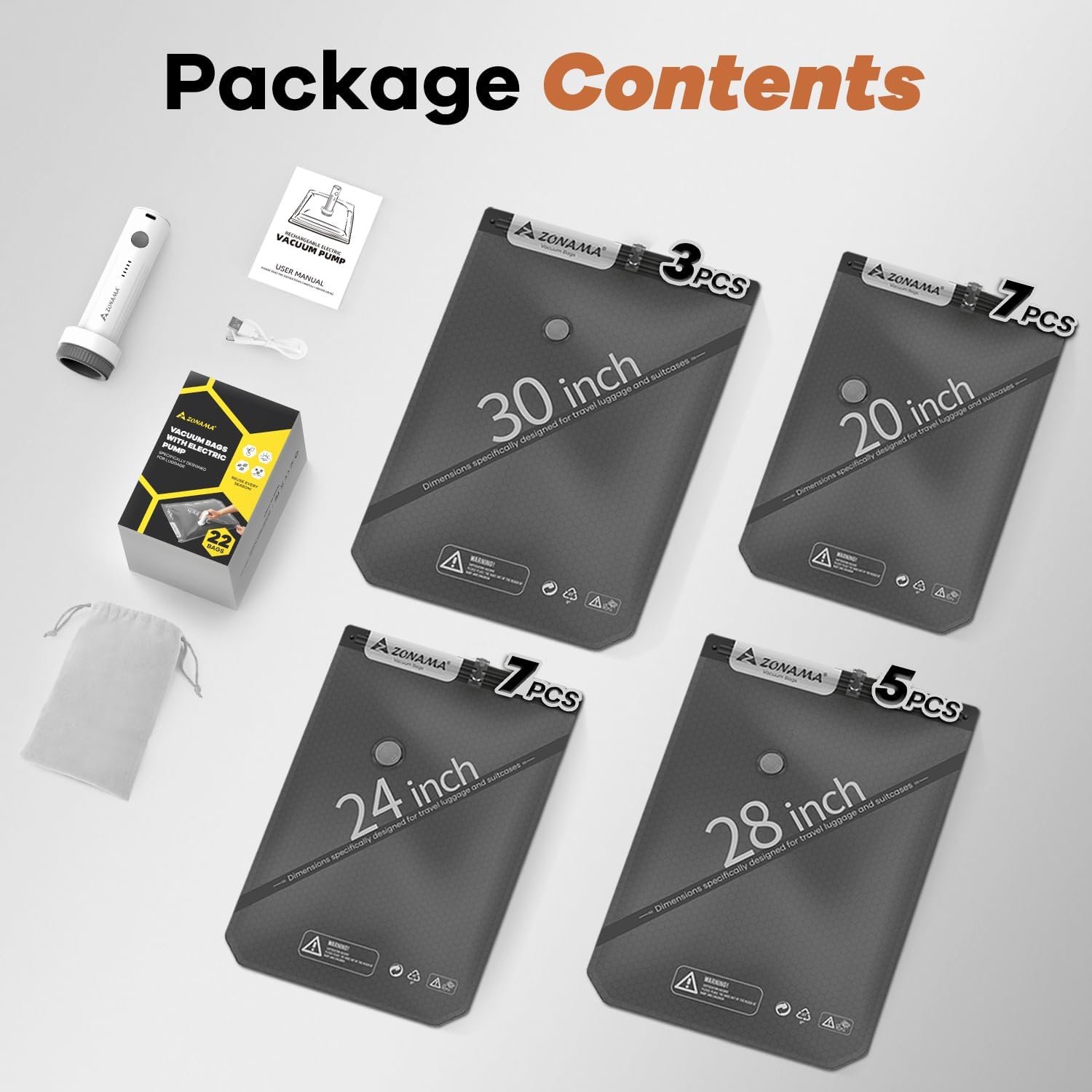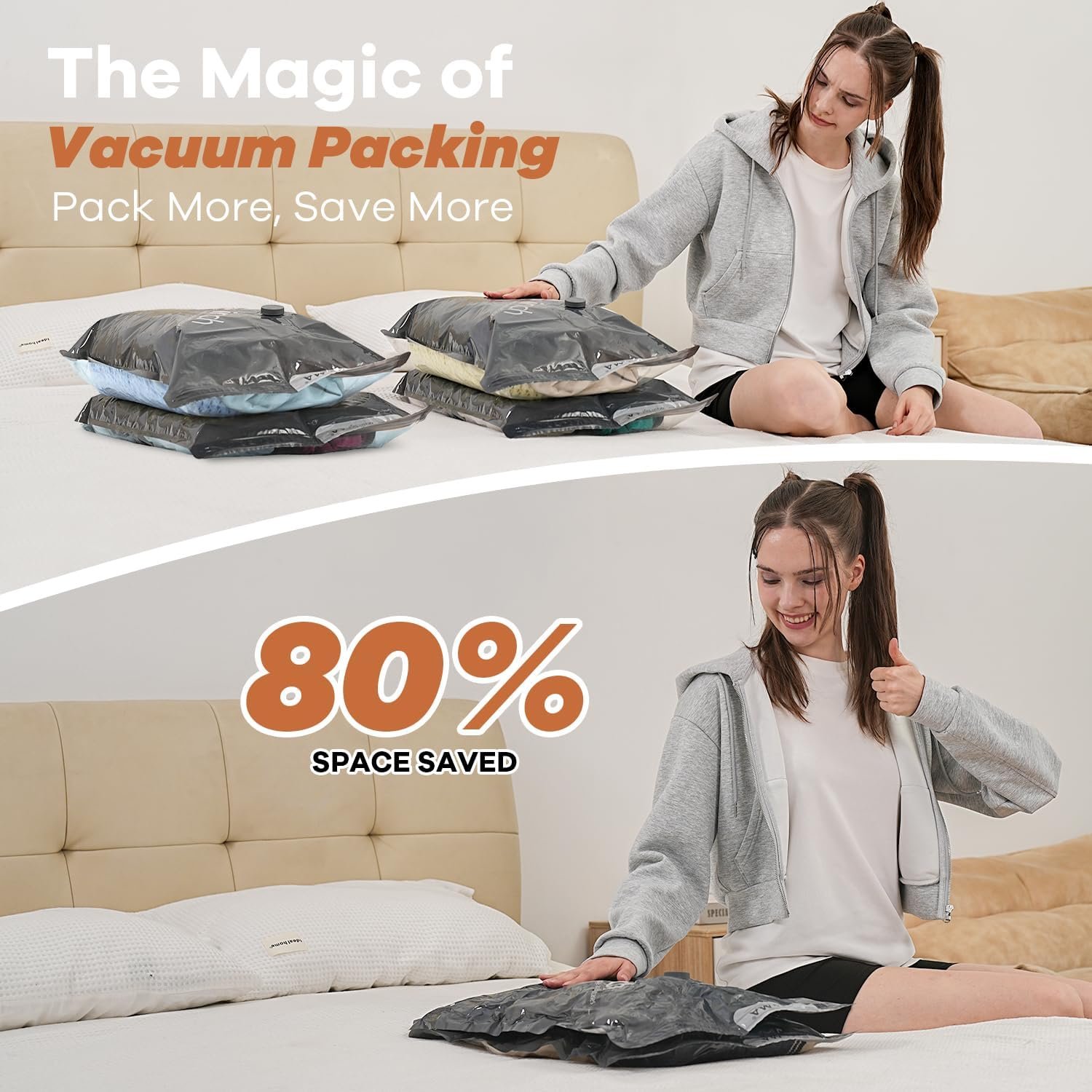 【Versatile 4-Size Set for Every Need】This complete set includes 22 bags in four versatile sizes(15.75×21.65in, 15.75×23.62in, 19.39×29.53in, 19.69×31.5in), making it the perfect solution for all your space-saving needs. Perfect for organizing your travel essentials! Keep your clean clothes separate from dirty during the trip, save valuable space for your suitcase, travel backpack, or handbag and seamlessly switch to home storage for seasonal clothing, blankets, and bedding