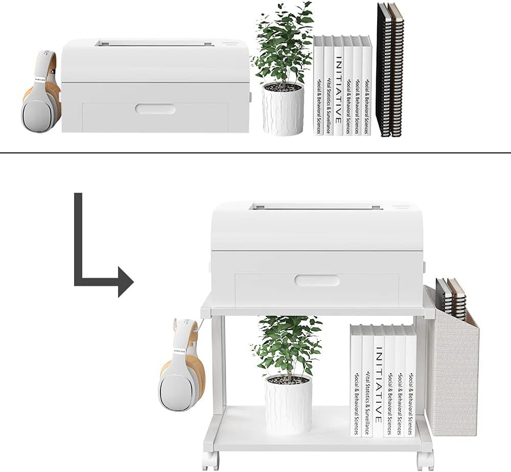 SPACE SAVING : The 2 tier printer stand can be used as a desktop shelf or as an under desk organizer, and also provide an additional Storage Bag. Storage bag will help organize your working space at home or office more efficiently
