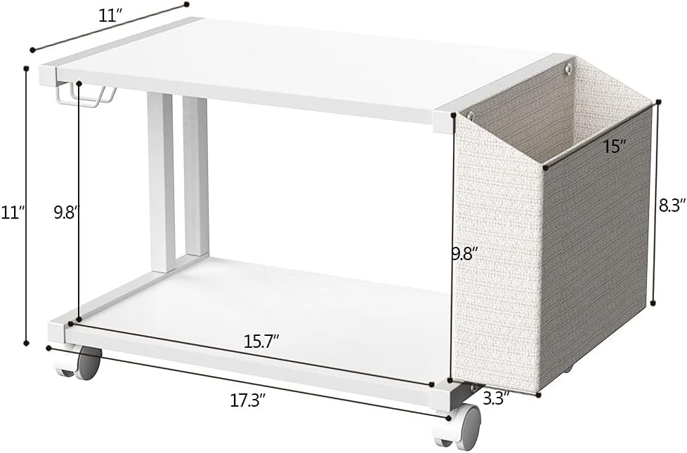 MULTI-PURPOSE 2 TIER MOBILE SHELF : Dimensions: 17.3”Lx11”W’x11”H-Ideal size for small 3D printers, fax machines, scanner and other office supplies. Our multifunctional desktop printer shelf can also be used as office organization, dorm essential, book shelf, storage shelf, and so on. It can be used in home, office, dorm, craft room as an ideal organizer and storage