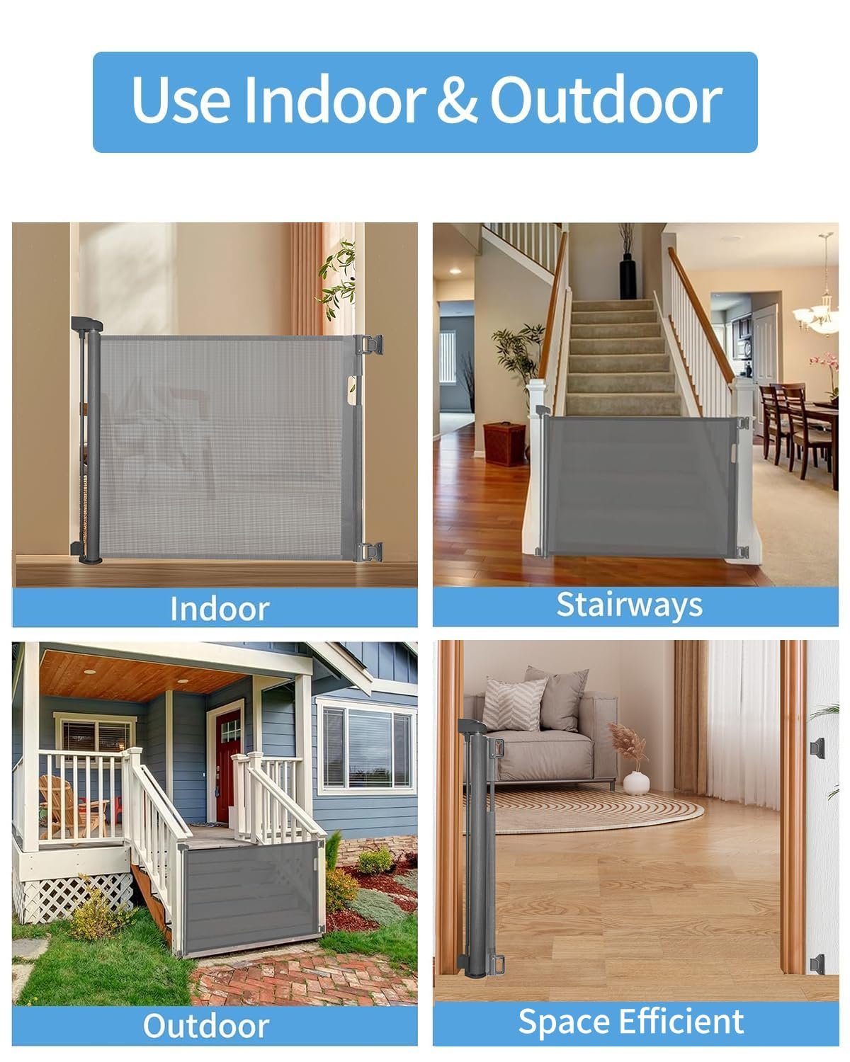 Effortless Installation for All Spaces:The retractable mesh gate is simple to install in minutes, whether you’re setting it up in doorways, stairways, or hallways, indoors or outdoors. No hassle, no mess—just an easy setup that ensures a secure and safe barrier for your pets. It fits a variety of spaces to keep your furry friends safe.