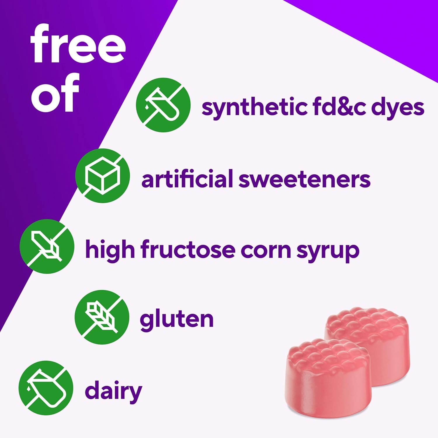 No high-fructose corn syrup, no artificial sweeteners, no dairy, and no synthetic FD&C dyes