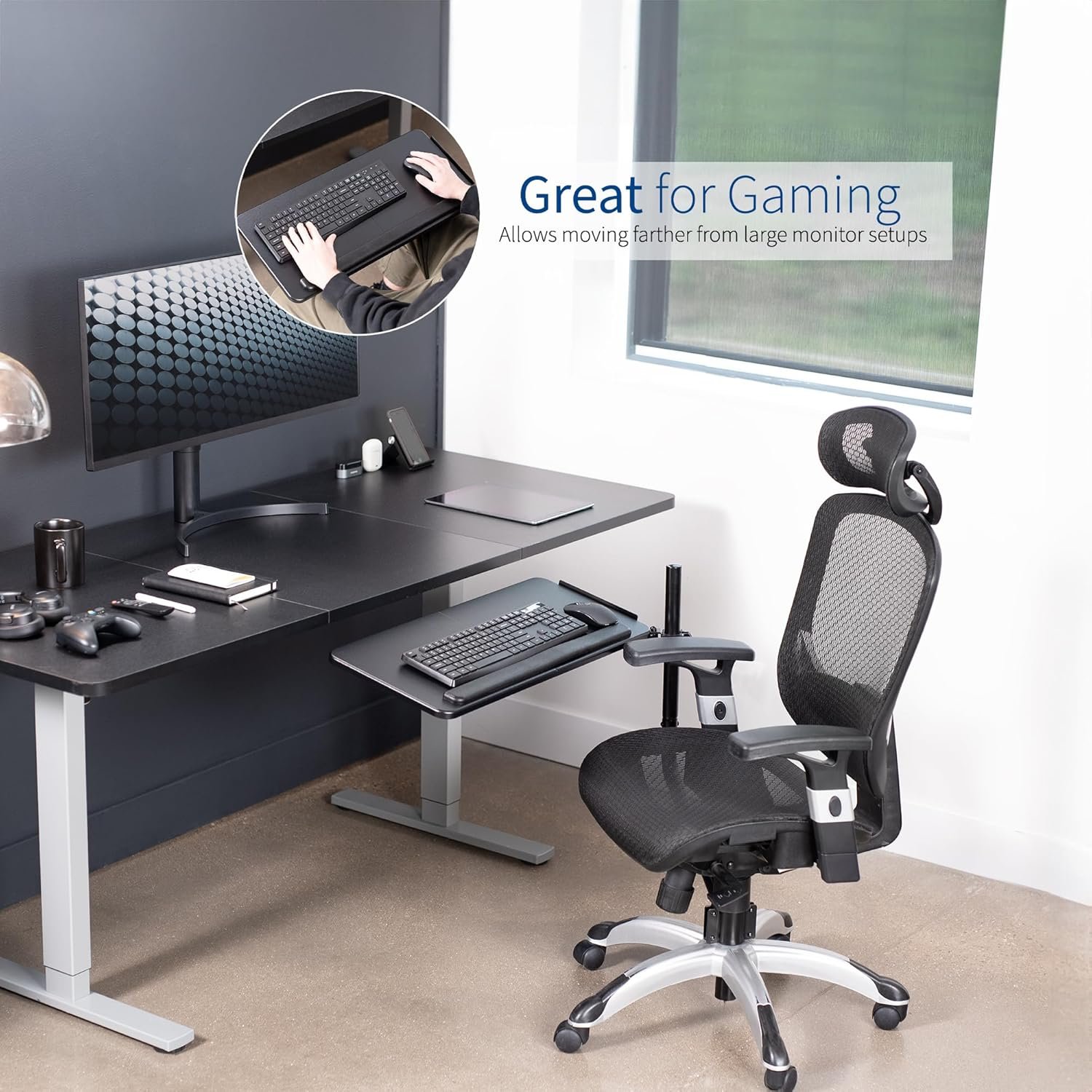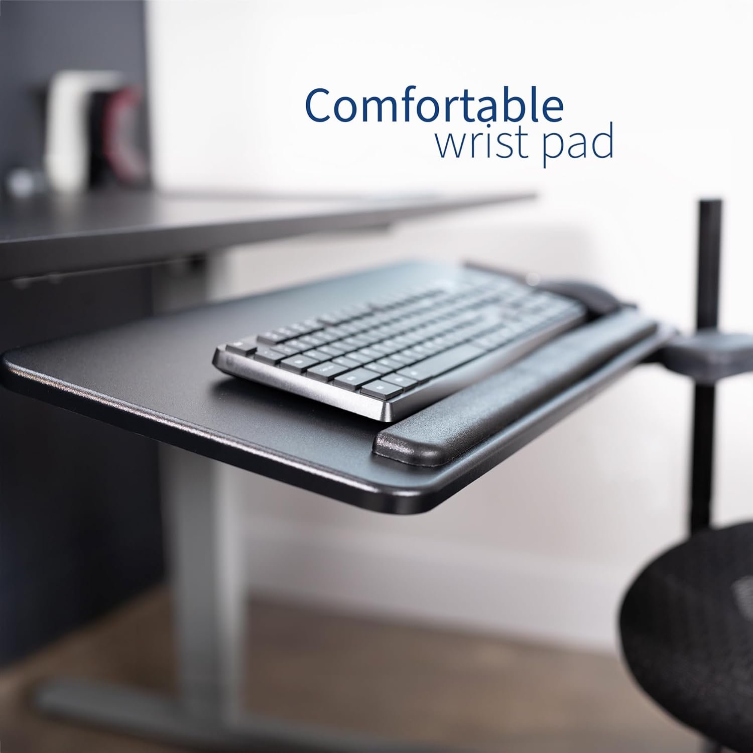 Large Keyboard Surface: The spacious 26” x 11.8” platform fits most standard and oversized keyboards on the market, and wrist padding increases overall comfort