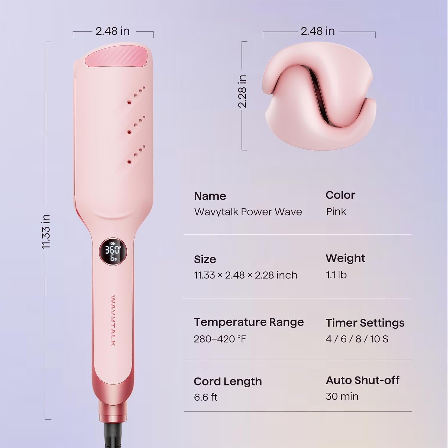 Wavytalk Power Wave Hair Crimper, Curling Iron Hair Crimper Waver, Ventilation Design for Less Damage, Ionic Reduces Frizz, Effortless-Waver, Dual Voltage Crimping Iron, Pink