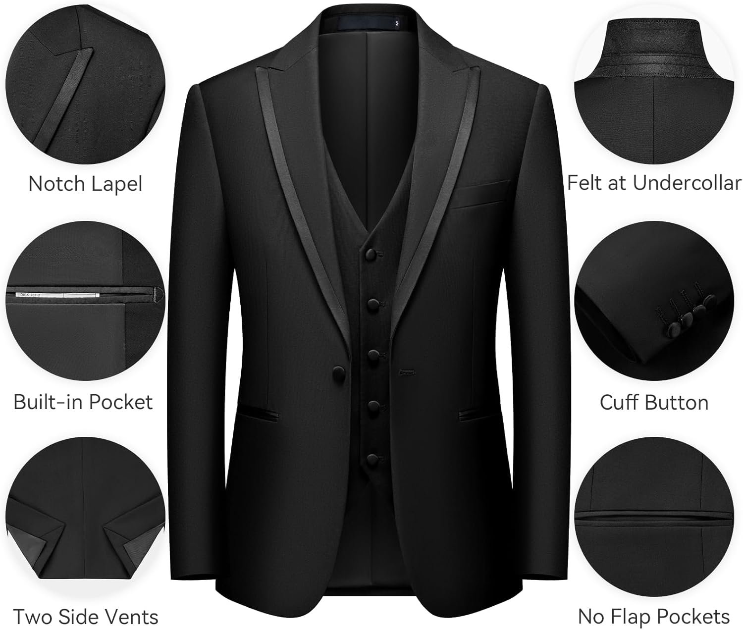 WEEN CHARM Men’s 3 Piece Suit One Button Blazer Jacket Vest Pants Set Slim Fit Formal Wedding Business Suit Tuxedo Suit