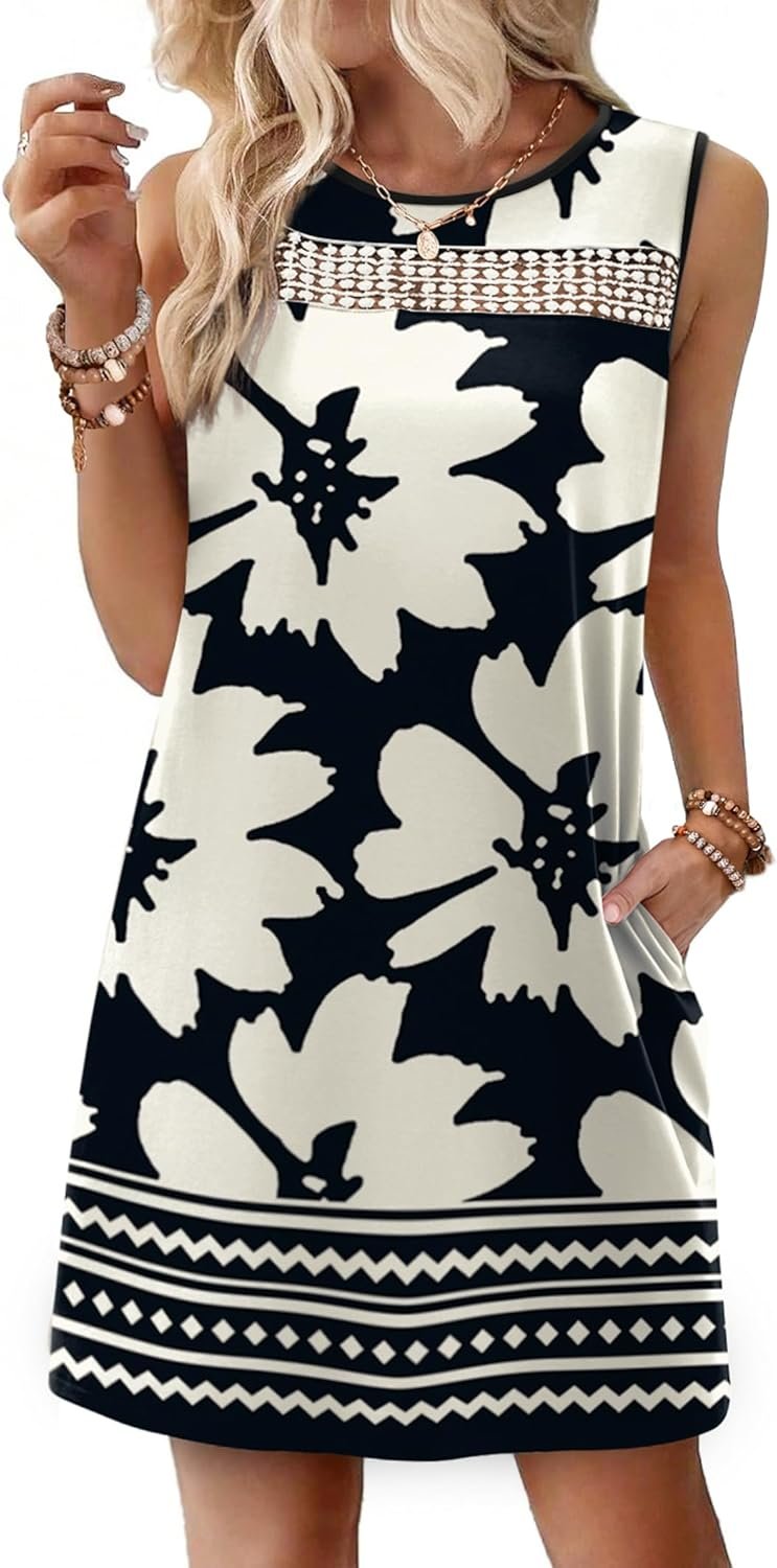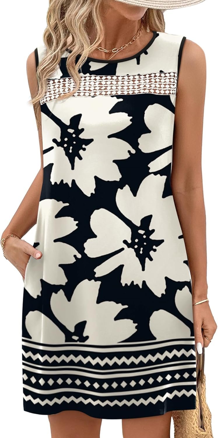 WIHOLL Womens Summer Dresses Round Neck Lace Sleeveless Sundresses with Pocket casual dresses for womencasual dresses for women