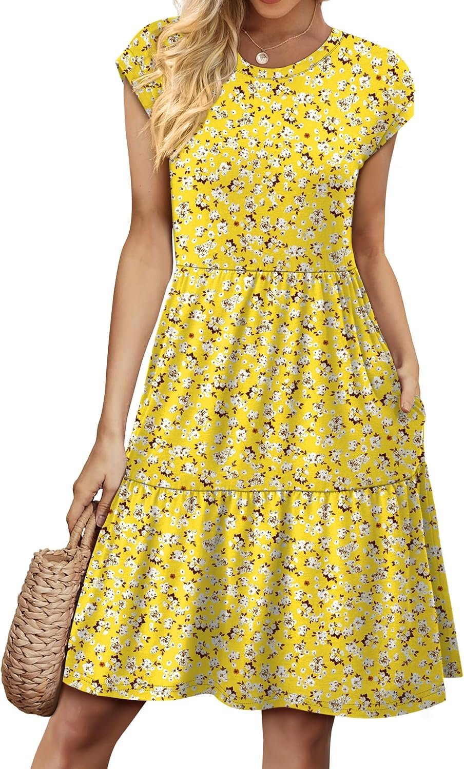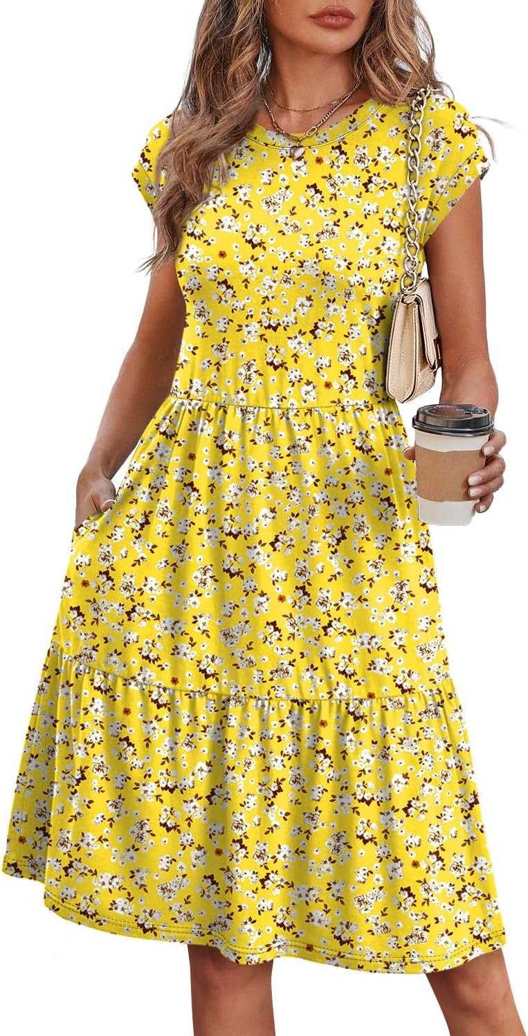 WIHOLL Summer Dresses for Women 2026 Cap Sleeve Casual Sundresses Floral Tiered Swing Fashion Beach Vacation Dress