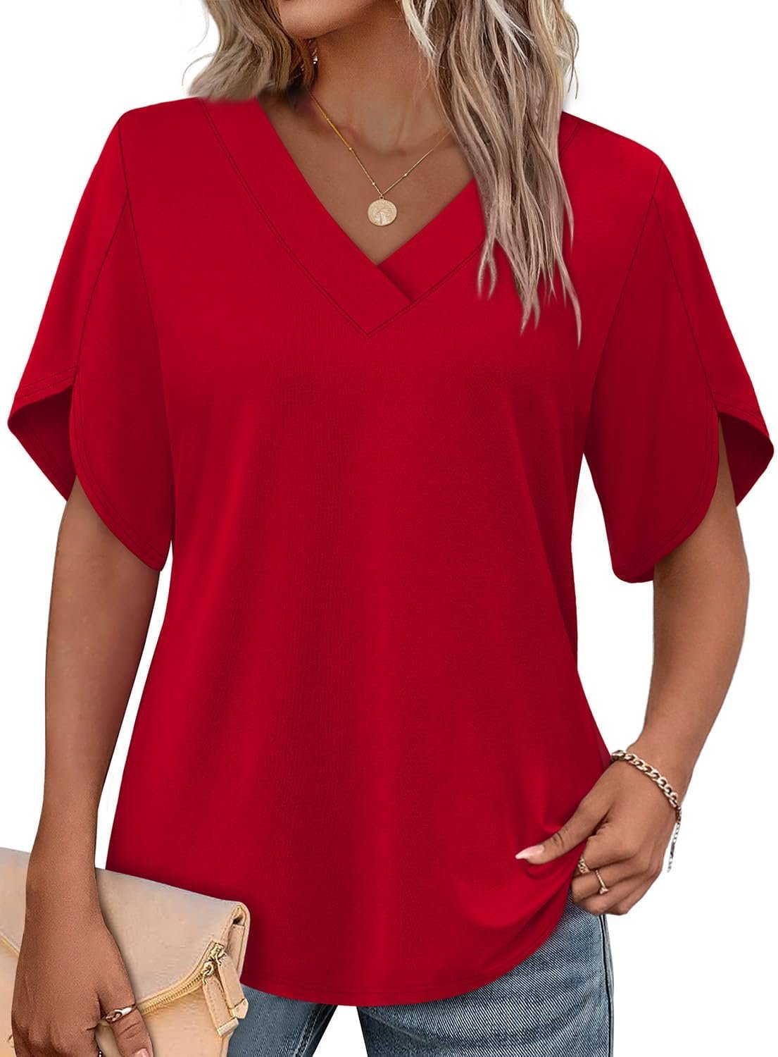 WIHOLL Womens Summer Tops Short Petal Sleeve Shirts Fashion V Neck Womens Clothing