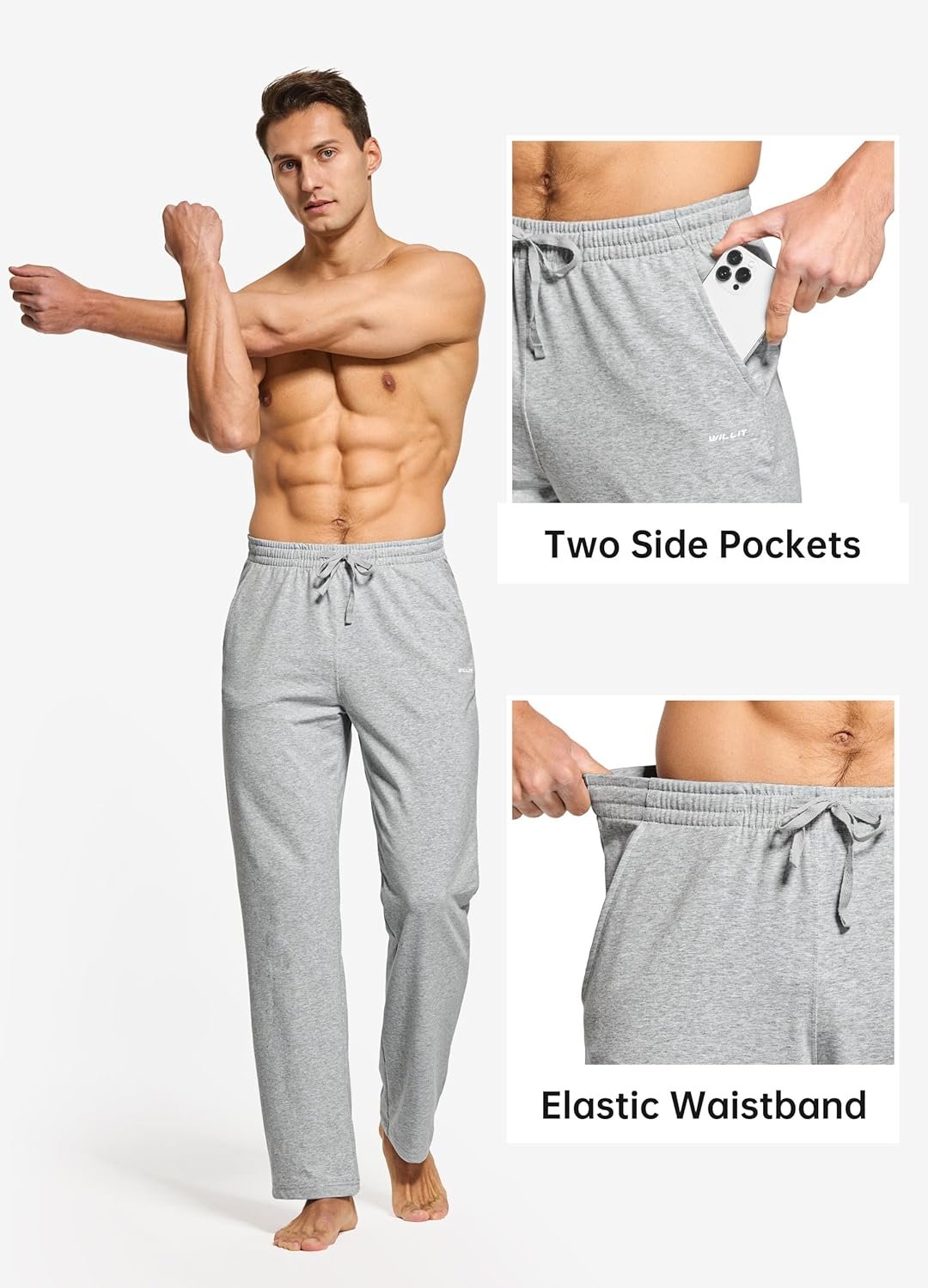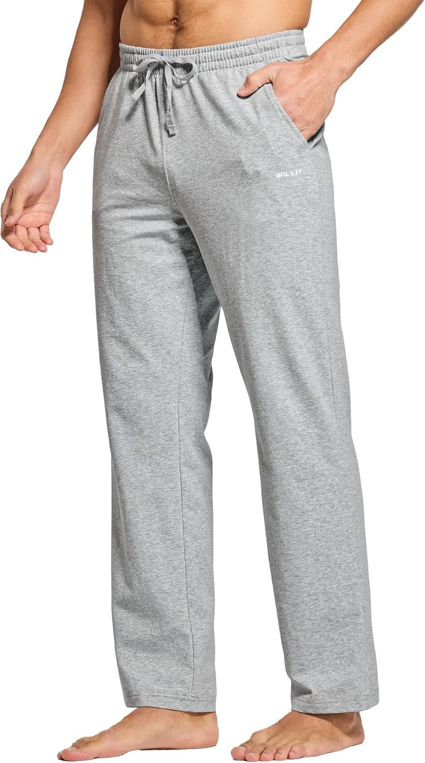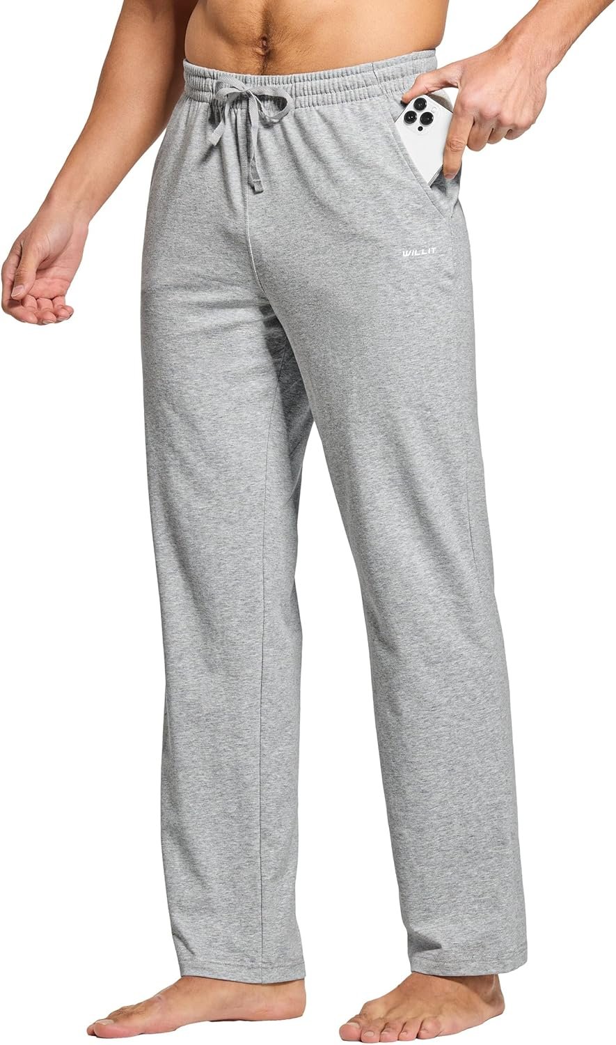 Willit Men’s Cotton Yoga Sweatpants Athletic Pants Open Bottom Exercise Lounge Pants Loose Male Sweat Pants with Pockets