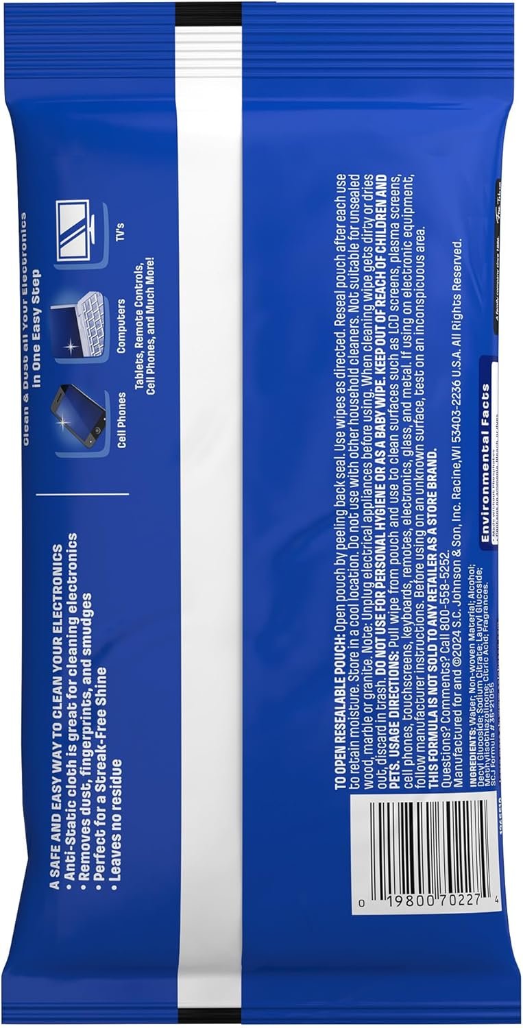 Electronic Wipes: with a gentle formula that safely removes dust, fingerprints, and smudges from electronics, leaving behind only our famous streak-free shine