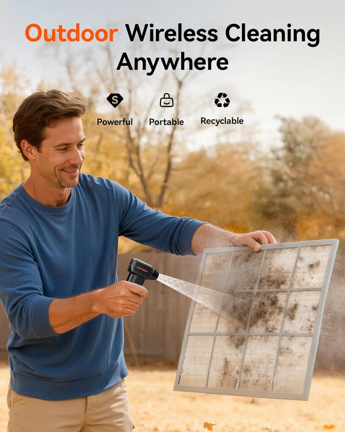 Reusable & Cost-Effective Investment: Replaces disposable canned air that run out quickly and freeze up. This cordless air blower is rechargeable and designed for repeated use, saving money in the long run by eliminating the need to constantly buy canned air . It serves as a sustainable cleaning partner for electronics, home surfaces, keyboards, and delicate gadgets.