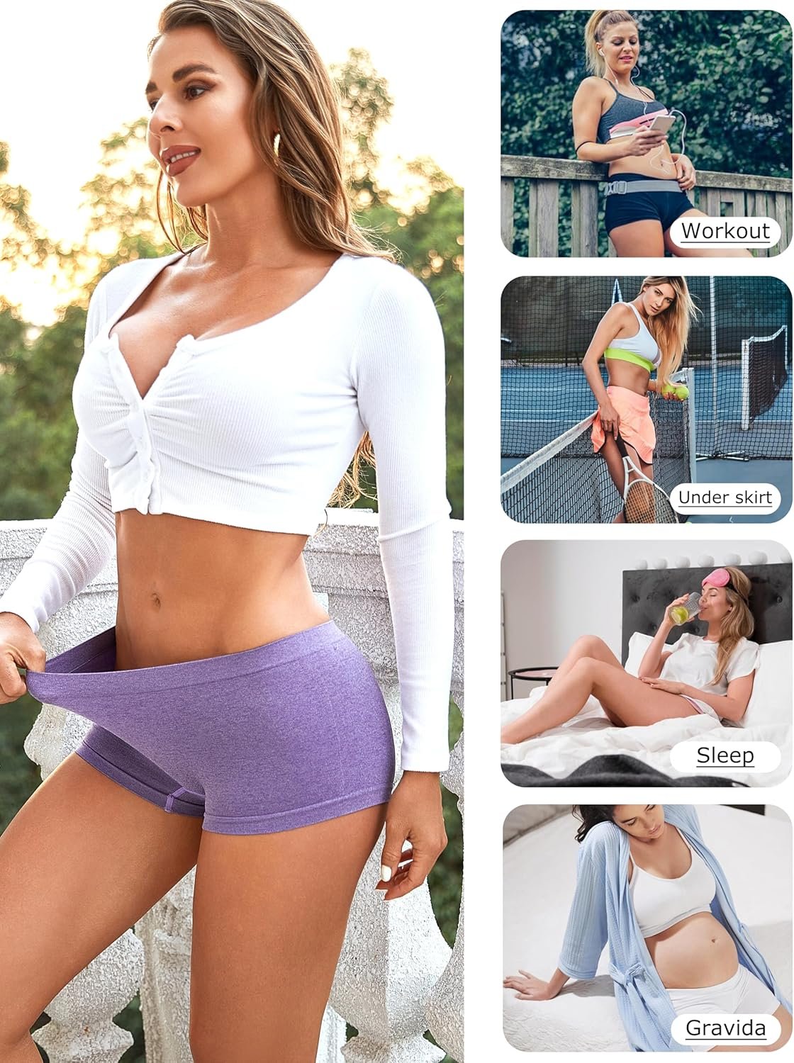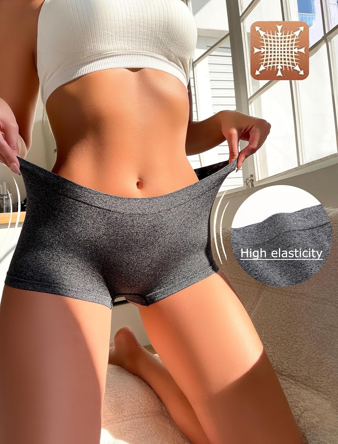Womens Boyshorts Underwear Seamless Boxer Briefs Full Coverage Soft Stretch Boxer Shorts For Women 4 Pack