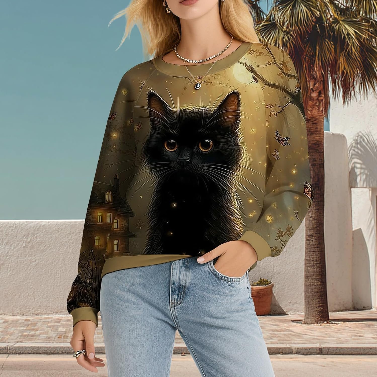 Be the first to review “Womens Long Sleeve Cat Graphic Sweatshirt Raglan Pullover Colorblock Casual Top for Cat Lovers”