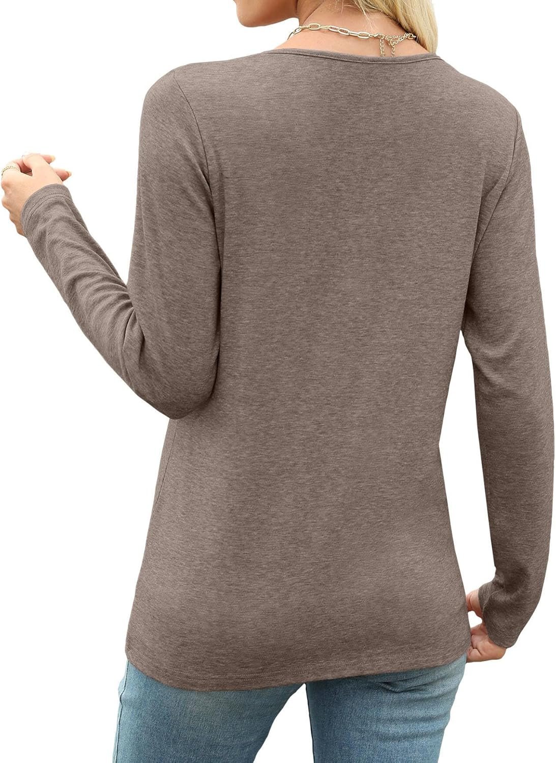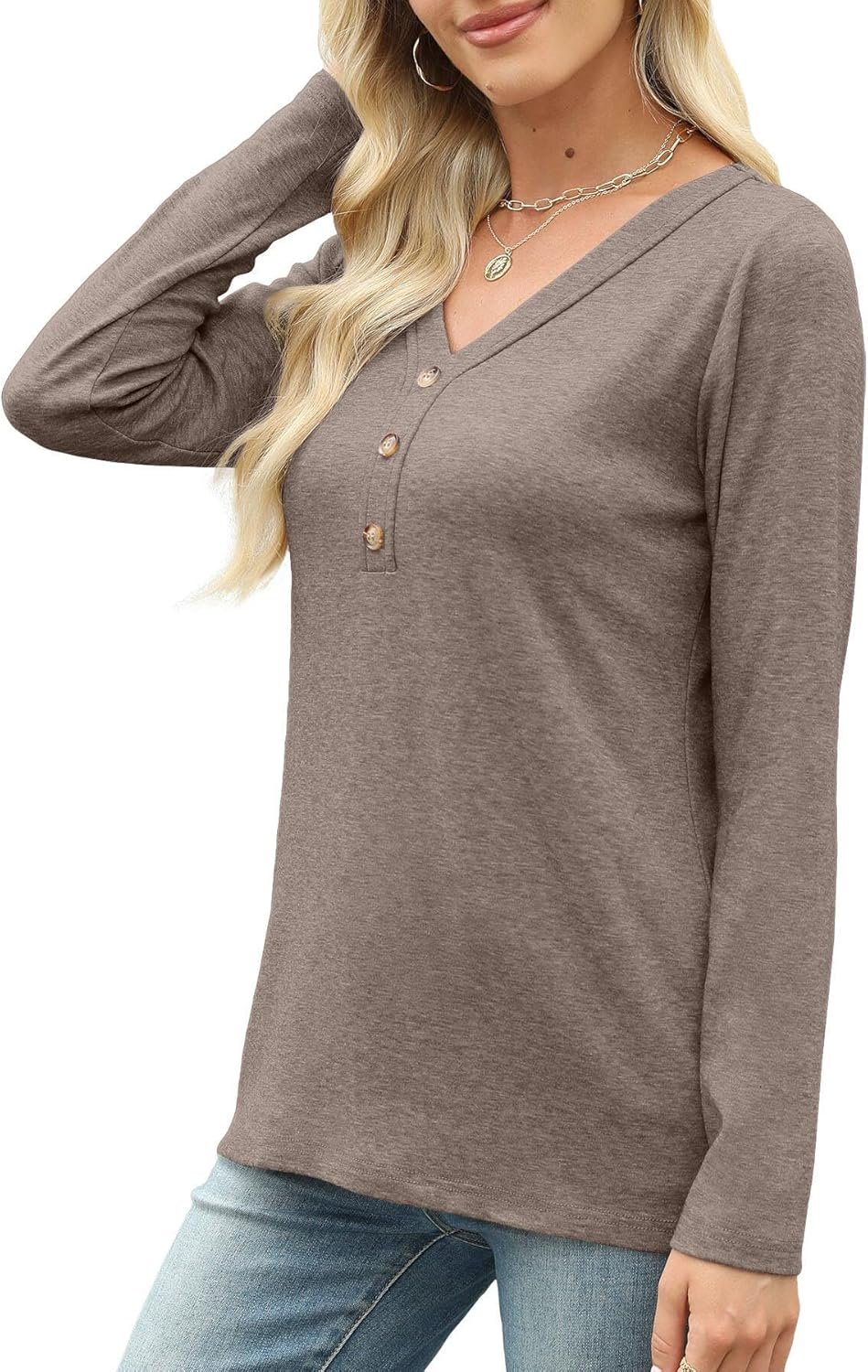 Womens Tops Long Sleeve Shirts Fall Winter Casual V Neck Button Knit Pullover Lightweight Tunic Blouse
