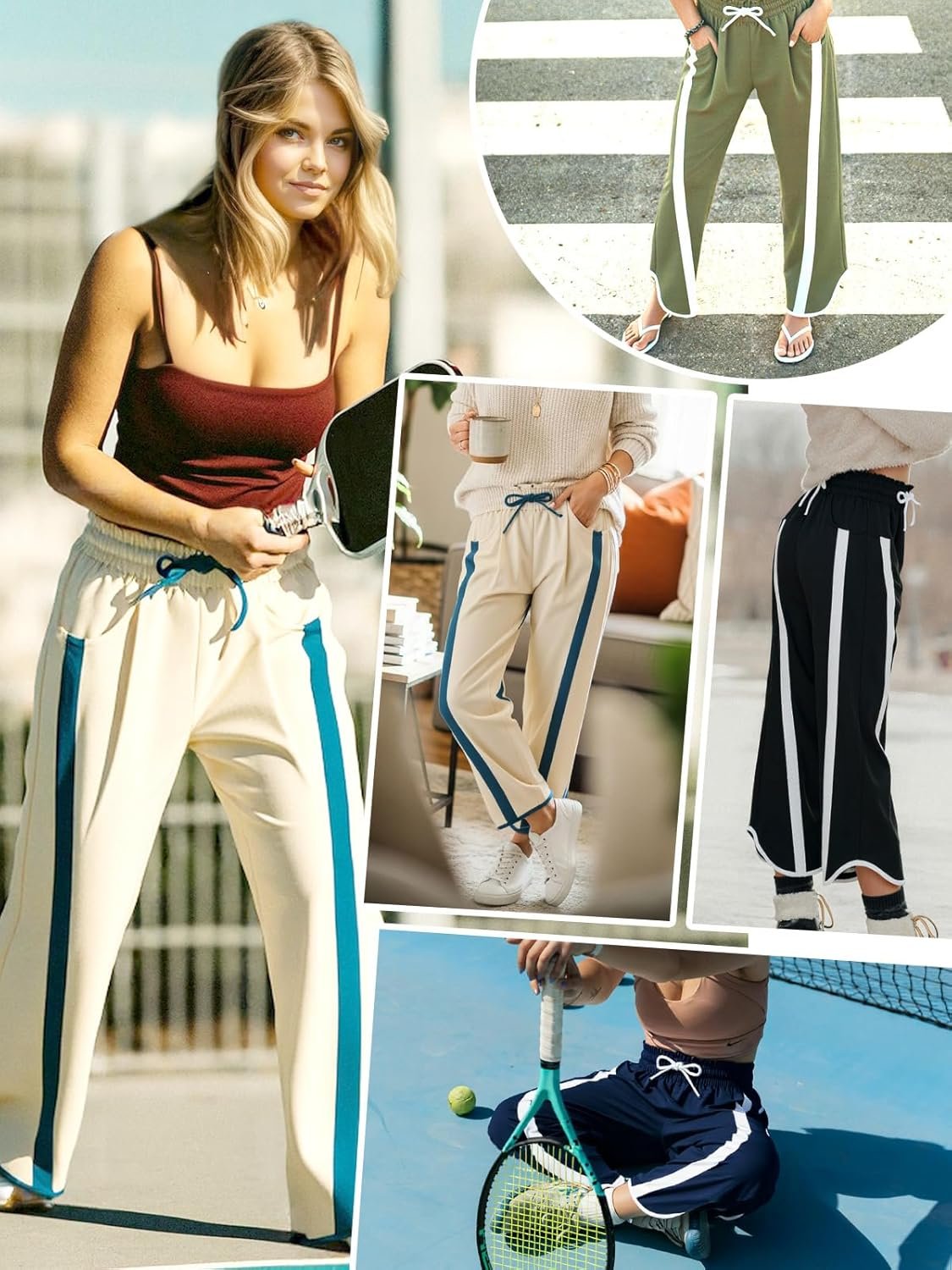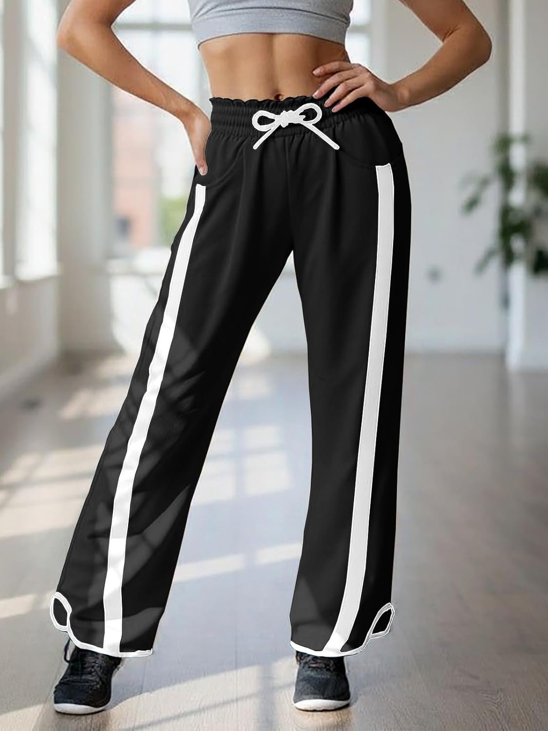 Workout Casual Womens Pants Wide Leg Baggy Elastic Waisted Stripes Track Pockets Y2K Trendy Activewear