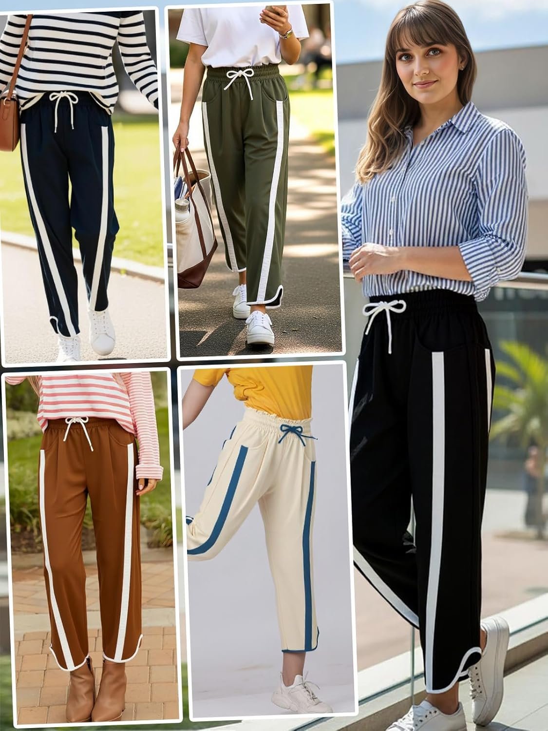 Be the first to review “Workout Casual Womens Pants Wide Leg Baggy Elastic Waisted Stripes Track Pockets Y2K Trendy Activewear”