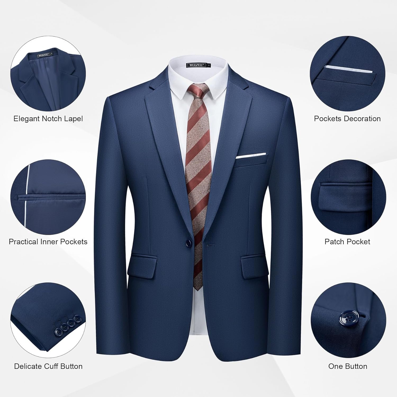 WULFUL Men’s 2 Piece Slim Fit Suit Set One Button Blazer Jacket Pants Tuxedo Set for Party, Wedding and Business